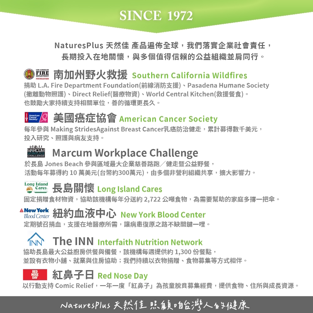 國際品牌 安心可靠:NaturesPlus 天然佳堅持高品質與純淨標準,產品經嚴格檢驗,讓您安心食用。