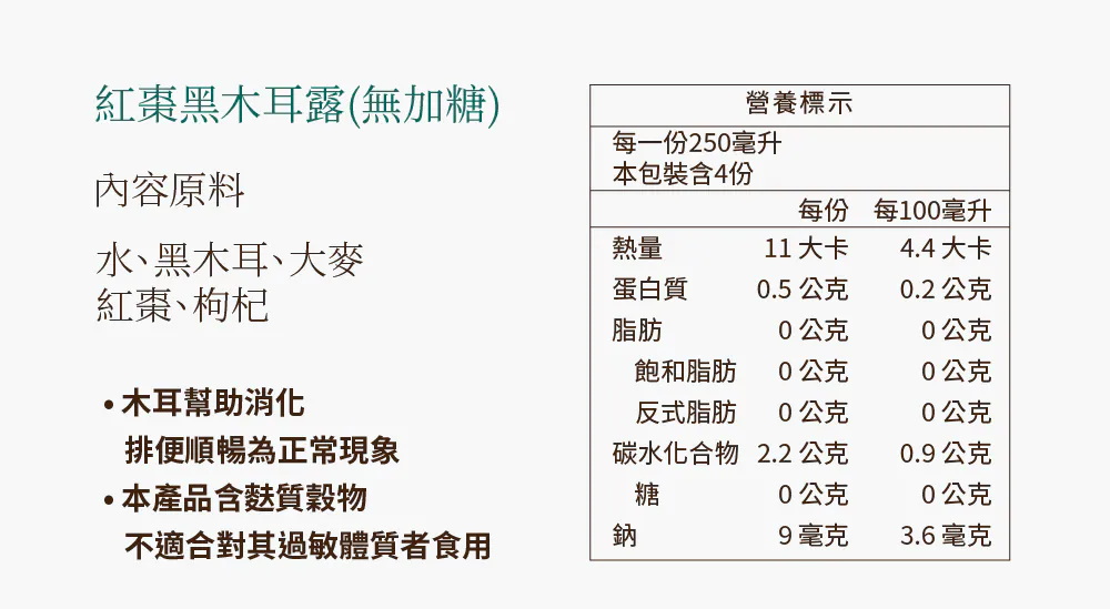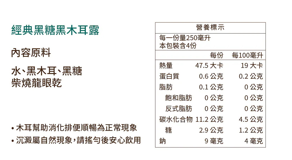 🎖零顆粒木耳、好吸收、膠質高🎖非常時期喝護全家的健康🎖補充攝取膳食纖維,幫助消化順暢🎖飲食控制最佳神隊友🎖奶瓶幼幼兒、牙口不好長輩皆能安心飲用❓常見Q&A❓Q1.孕婦可以喝嗎?A1.白木耳系列整個孕期都非常適合,黑木耳系列建議4個月以上可以定期飲用Q2.保存時間多久?如何保存?A2.全新製成,未開封冷藏保存期限約30日左右,以瓶身後面保存期限為主,因飲品皆為無添加,開瓶後建議一週內飲用完畢。‼️請注意不可冷凍避免造成瓶身破裂‼️Q3.可否加熱飲用?A3.可以,可依照個人喜好倒入適合的容器中,用電鍋、微波、隔水加熱皆可加熱後攪拌均勻盡快飲用完畢,不能久放也請勿放回冷藏(若有添加珊瑚草產品則不建議加熱)🍵加熱建議🍵微波加熱:30-60秒隔水加熱:小火慢煮60秒電鍋加熱:外鍋加入1/4碗水*因產品皆為無添加防腐劑、抗氧化劑、制酸劑,若有遇飲品配達有失溫或者變質情形請立即聯絡客服回收及後續服務☎️客服專線:0800-001-394🗒️LINE:@okasang🤵♀️客服服務時間:一、二 8:30-17:00三、四 、五 8:30-21:00六、日 10:00-21:00