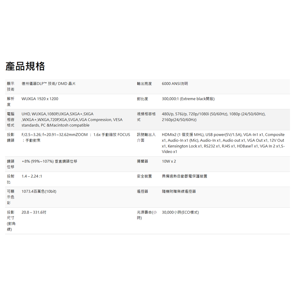 昌運監視器 OPTOMA RZ656U-T 輕巧型高亮度工程及商用投影機 6000流明雷射投影機