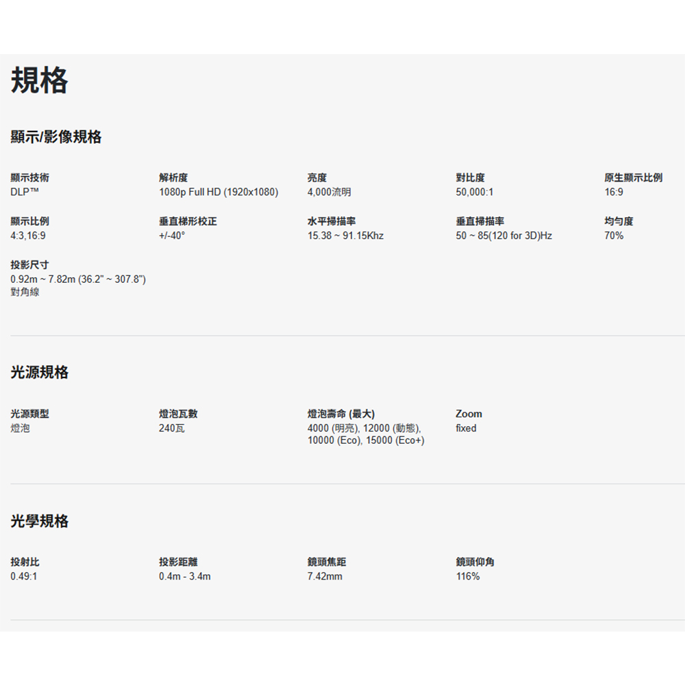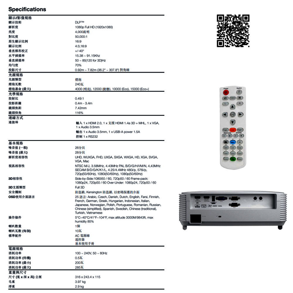 -高亮度Full HD 1080p投影機,4000流明