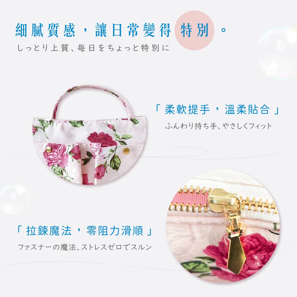 日本製 【Passage Bois】玫瑰 雙口袋大容量抗菌手提袋