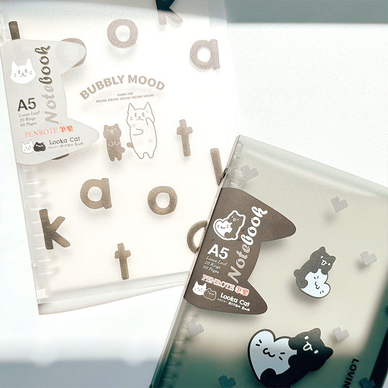 Looka Cat A5 20-Hole Loose-Leaf Notebook-White