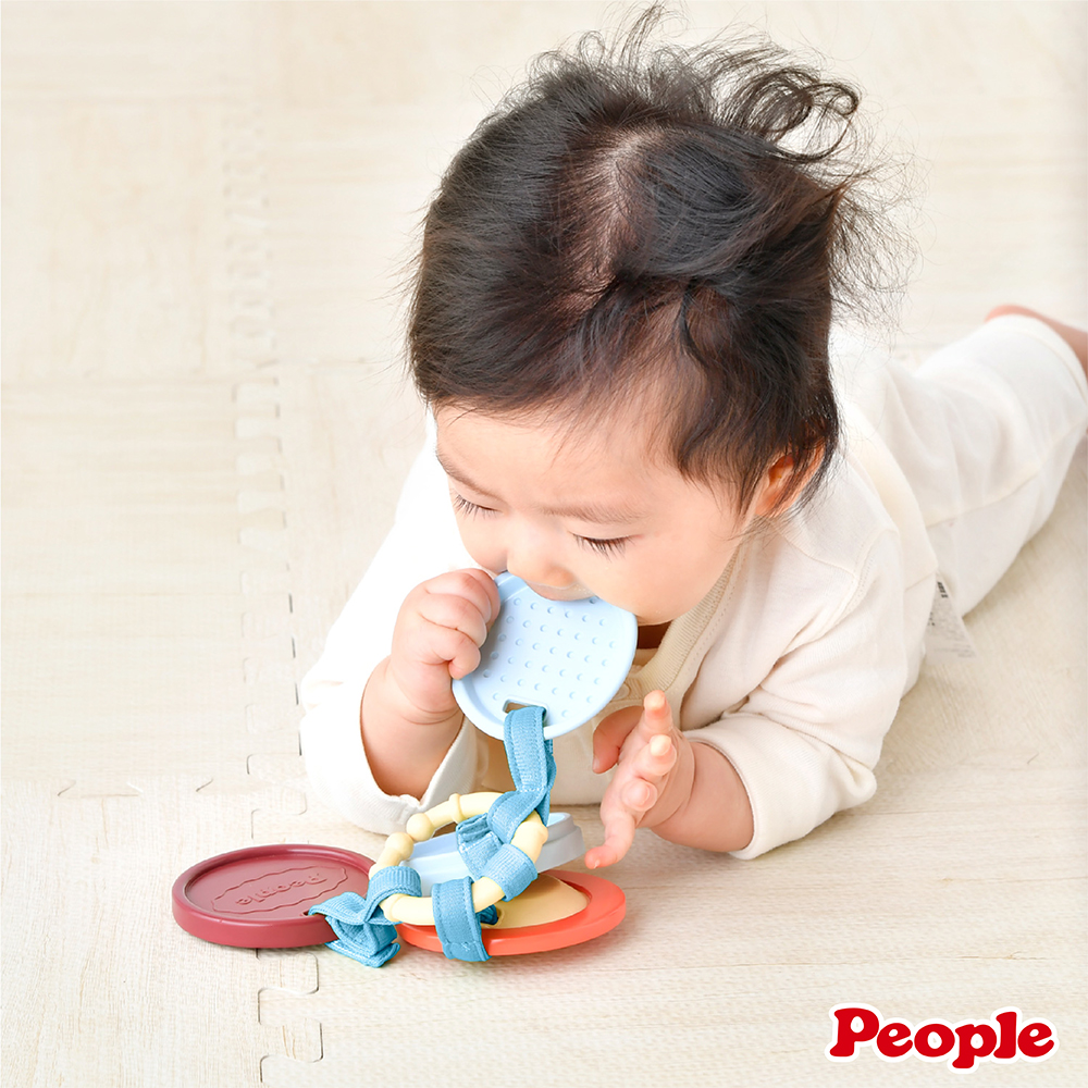 透過多種玩法&豐富觸感增添樂趣,非常適合作為練習手指靈活的入門玩具喔! 小圓盤可串在吊環上,外出攜帶便利!也可單獨拆下玩耍喔!