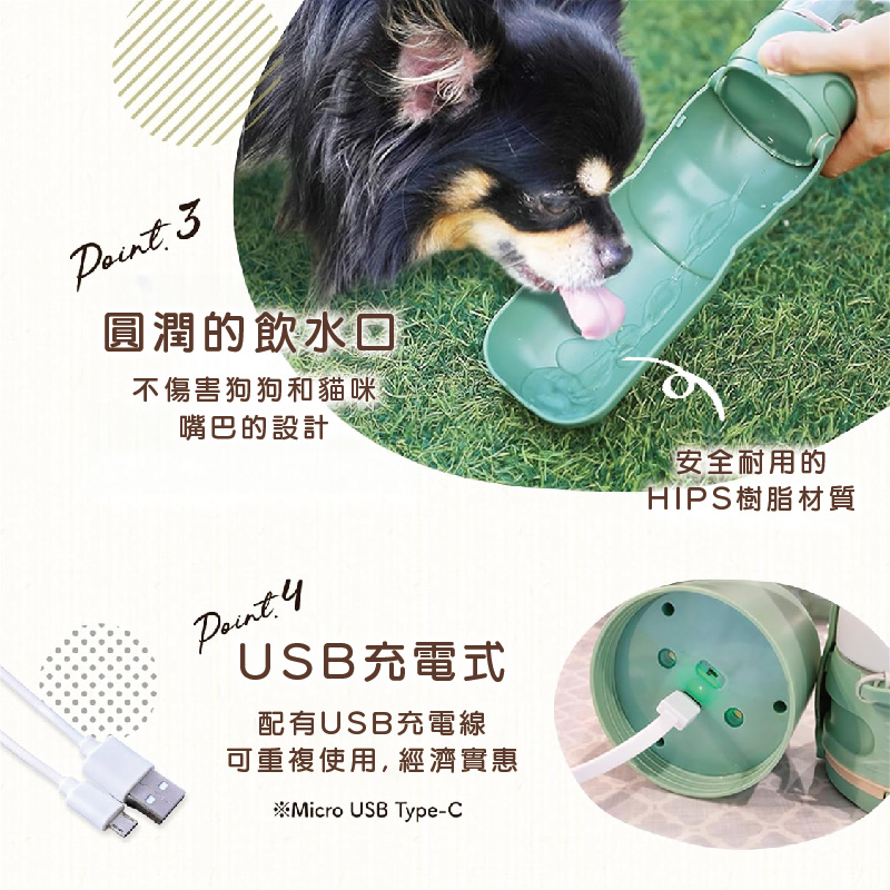 🌟 發光設計,夜晚更安全開啟水瓶底部LED燈,即可發出柔和光線,讓你與毛孩在夜間散步、郊遊時更加顯眼,提高安全性。