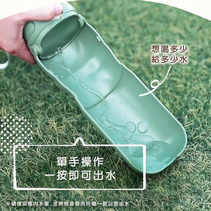 🐶 一手操作,便利飲水按壓式出水設計,單手即可控制水量,避免浪費與濺濕衣物;瓶身符合人體工學,攜帶舒適。
