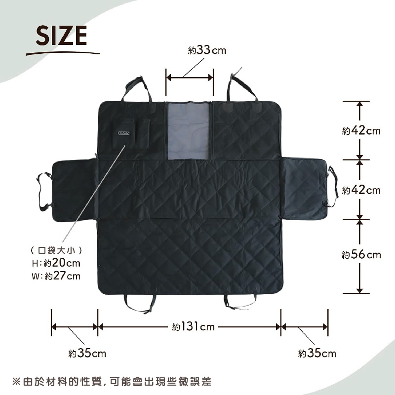 🚗 大尺寸覆蓋後座空間尺寸覆蓋整個後座,不僅保護座椅,還能阻隔寵物掉落後座縫隙,提升乘坐安全。
