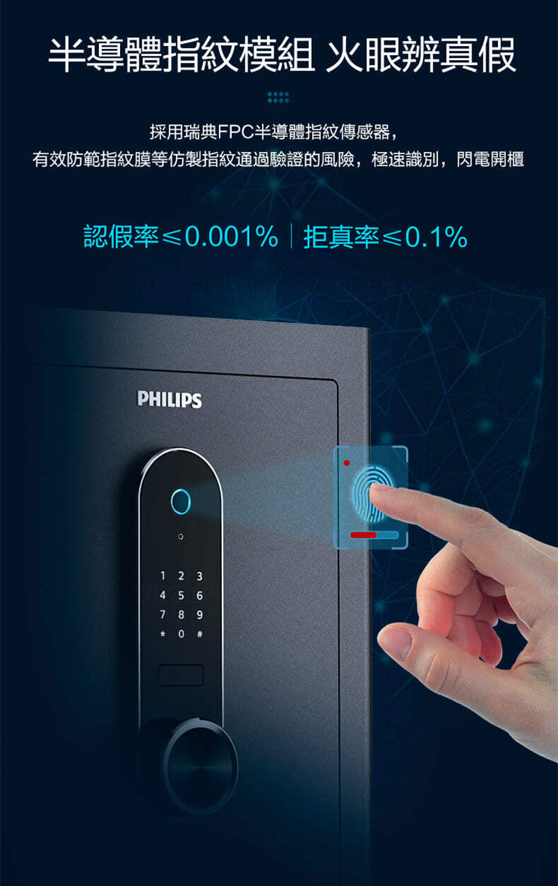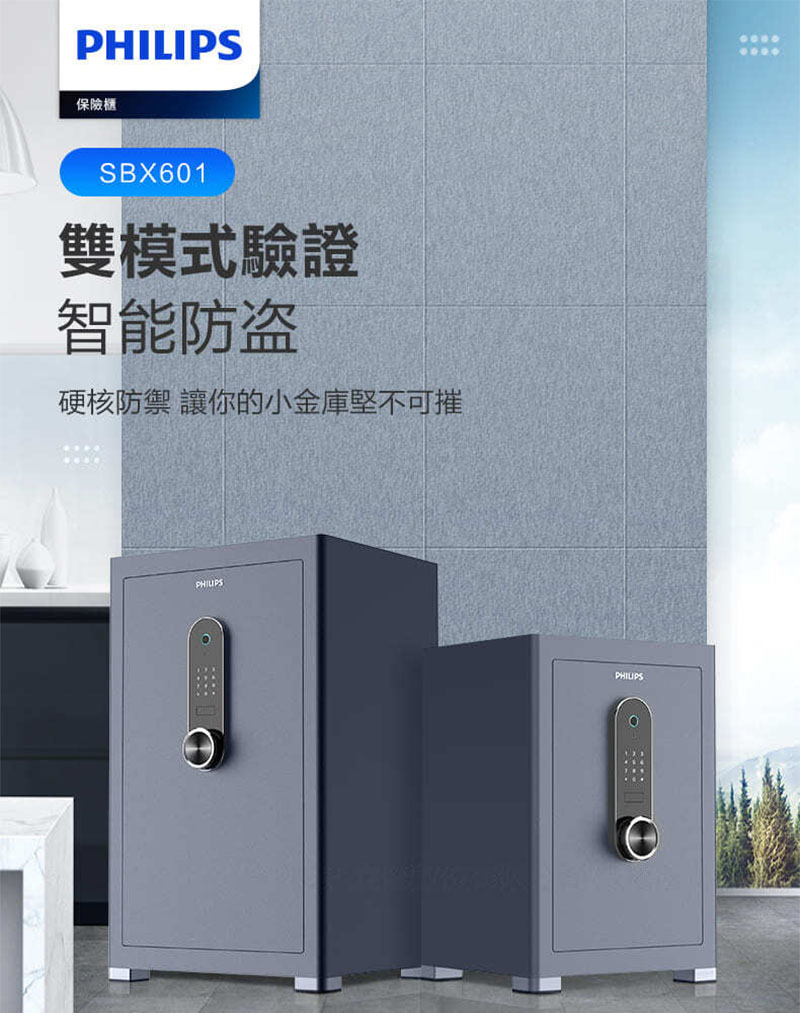 PHILIPS 飛利浦 智能 時尚智簡 存儲無憂 保險櫃 (指紋/密碼 /機械鑰匙) /台SBX601-7B-淡雅藍