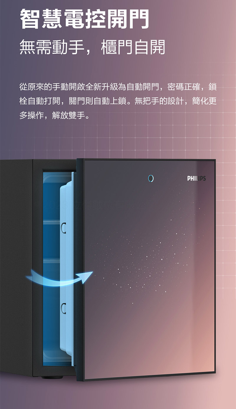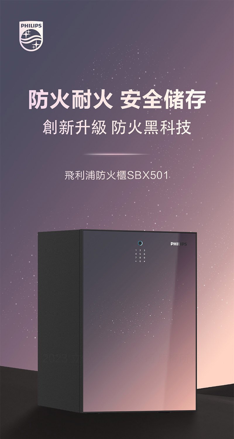 PHILIPS 飛利浦 智能 防火耐火 安全儲存 防火櫃 (指紋/密碼 /機械鑰匙) /台 SBX501-7C-銀河紫