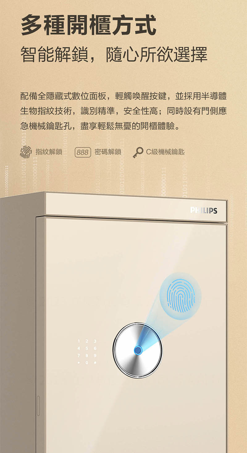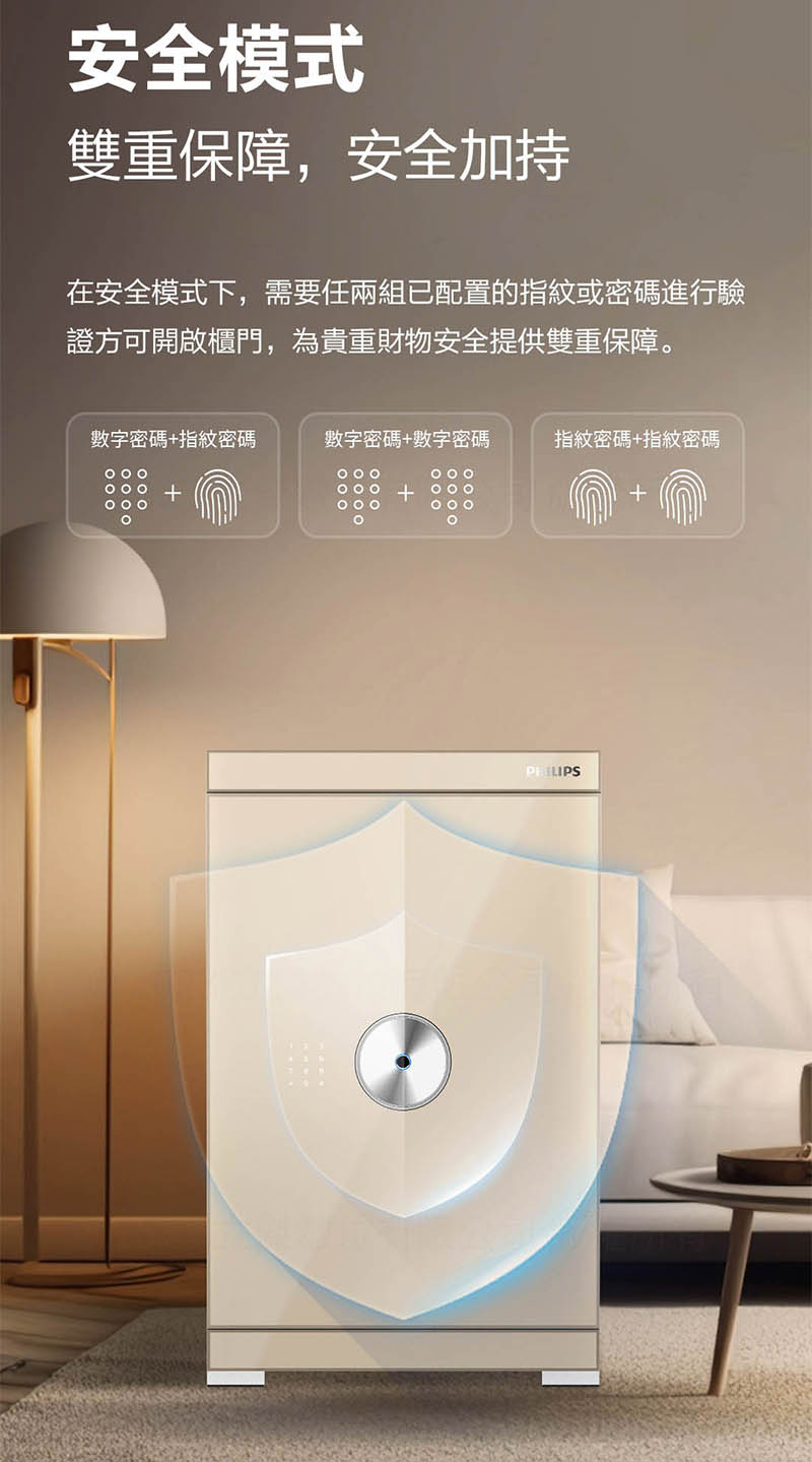 PHILIPS 飛利浦 智能 WIFI 互聯 保險櫃 (指紋/密碼 /機械鑰匙) /台 SBX602-5C-淺霞金