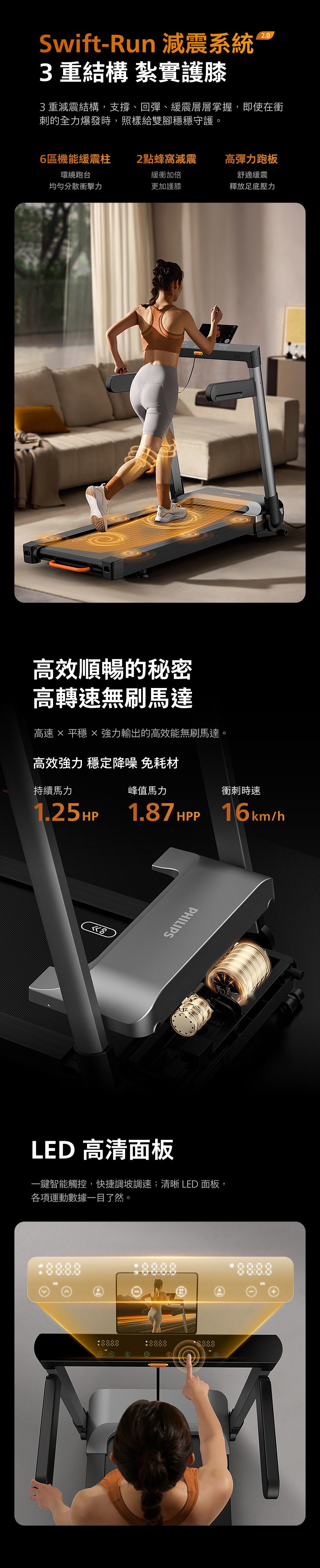▲64cm寬大跑台 暢手揮臂不拘束