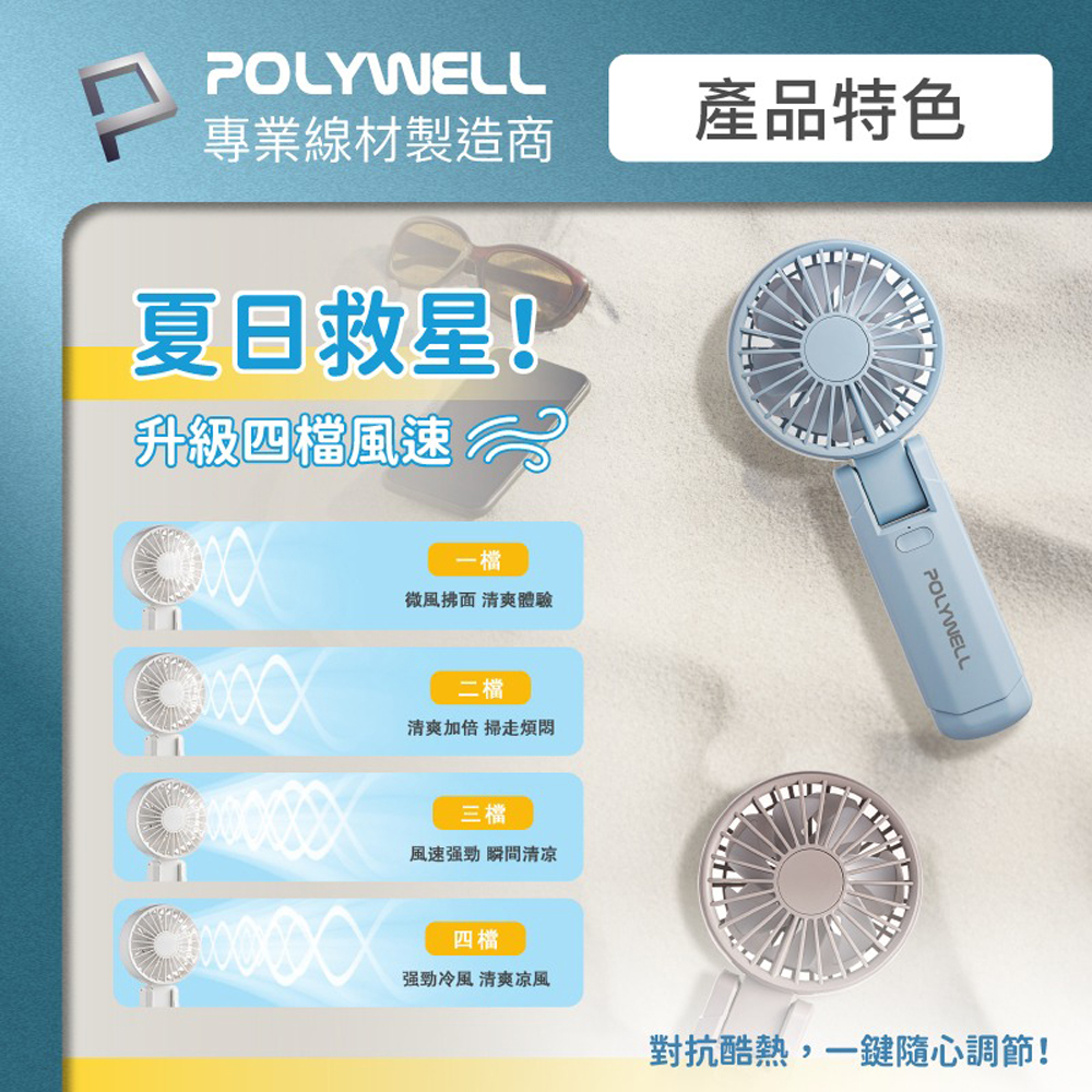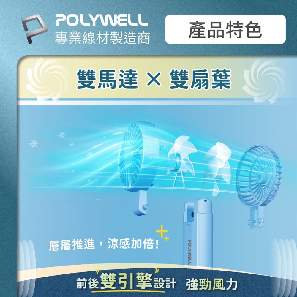 ◎ 產品:POLYWELL 雙葉片摺疊手持風扇