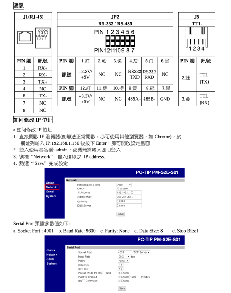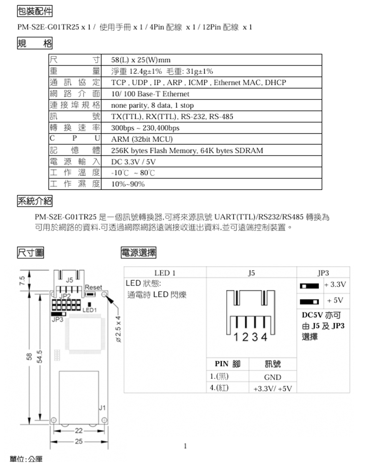 昌運監視器 PONGEE Pegasus PM-S2E-G01TR25 TCP/IP網路轉換器模組