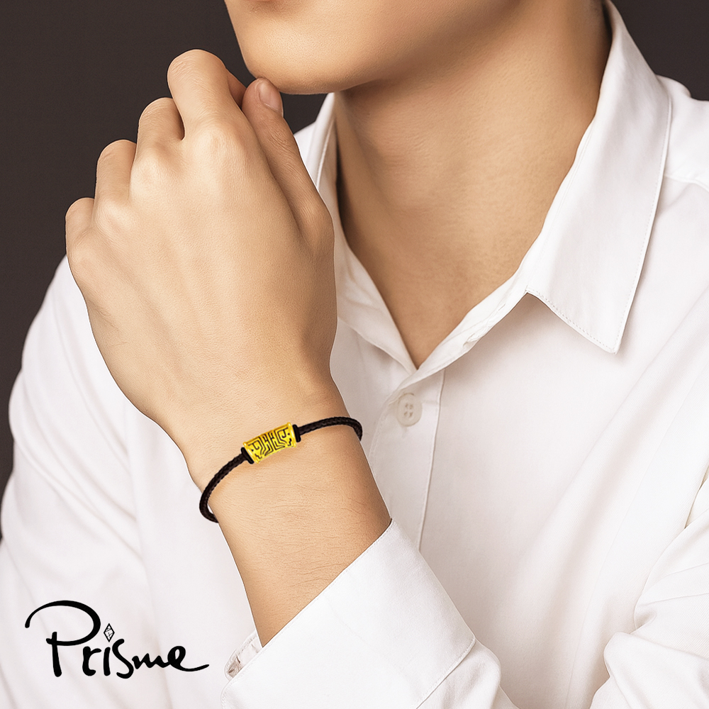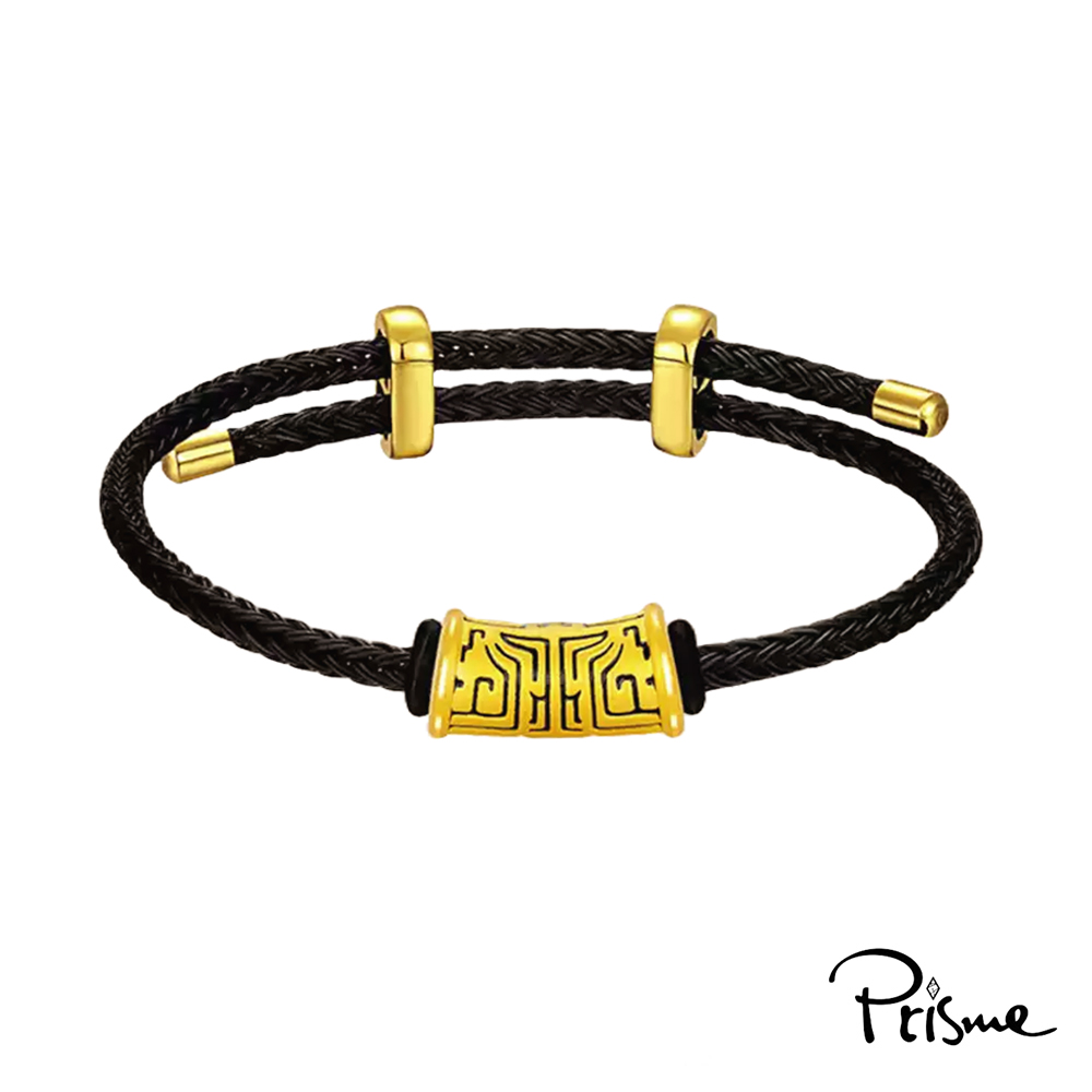 【Prisme Gold】黃金手鍊 送禮男生 999純金墜飾皮手環 多款選 (金重:約0.08錢±0.03) - 饕餮圖騰