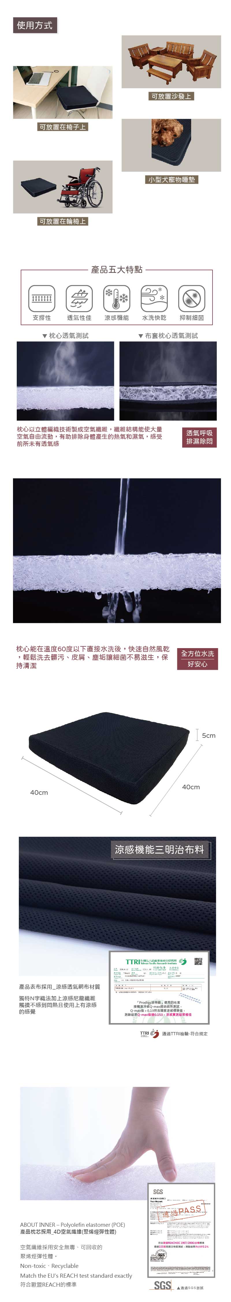 |枕心可水洗|4D空氣纖維坐墊/椅墊 超透氣
