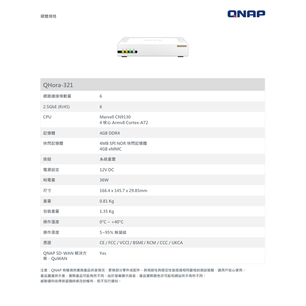昌運監視器 QNAP 威聯通 QHORA-321 新世代 6 x 2.5GbE SD-WAN 高速路由器