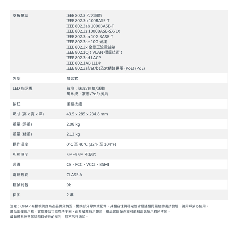 相容 10GBASE-T 及 2.5GBASE-T Multi-Gigabit NBASE-T 標準,可支援多網速 (10G / 5G / 2.5G / 1G / 100M),使用原有線材即可升級網路速度。