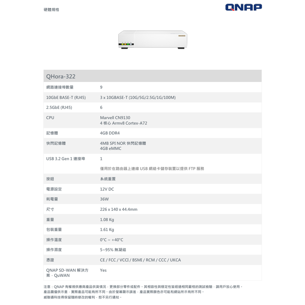 昌運監視器 QNAP 威聯通 QHora-322 新世代 3 x 10GbE SD-WAN 高速路由器