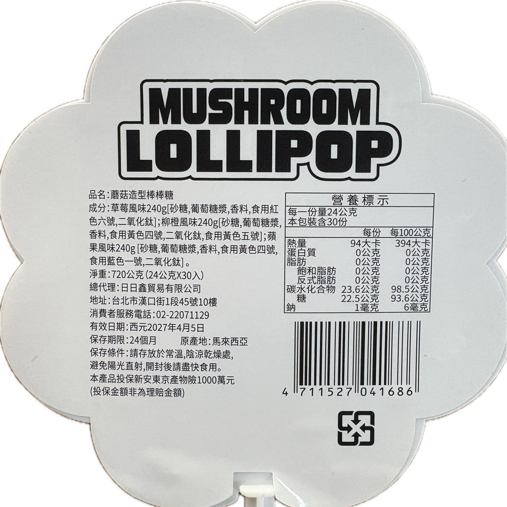 萬聖節糖果 聖誕節糖果 聚會PARTY糖果 可愛糖果 搗蛋糖果 Mushroom Lillipop蘑菇棒棒糖(24g*30支)/株 [1株免運組]
