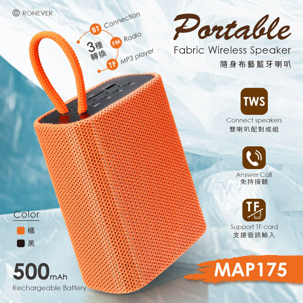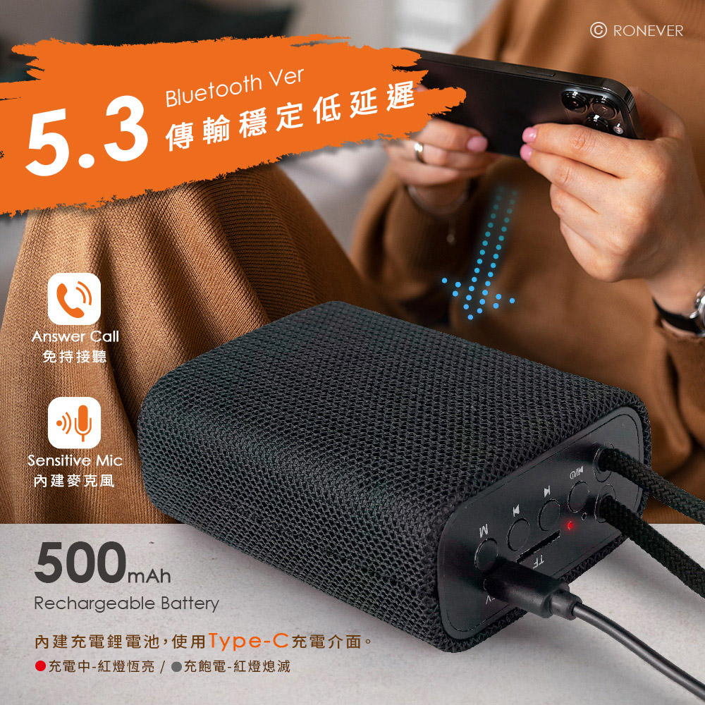 • 3W輸出功率,層次音質,震撼聲歷其境。• TWS連線可同時使用2台藍牙喇叭播放。• 內建麥克風,支援免持接聽通話功能。• 狀態指示燈,清晰辨識開機/連接狀態、充電狀態。• 布藝工法,緊密包覆機身,耐磨編織掛繩,隨身好攜帶。• 防滑底墊增加穩固(需撕除膠膜)。• 支援BT藍牙連接/TF插卡/FM收音播放,自由轉換,暢享音樂色彩。藍牙技術︰藍牙5.3額定電壓︰3.7V輸入電壓︰DC 5V / 0.5A輸出功率︰3W頻率接收範圍︰10M電池規格︰14500鋰電池 500mAh 充電介面︰Type-C充電時間︰約1小時播放時間︰約1.25小時材質︰PP塑膠、布、電子零件產品尺寸︰約80x44x104mm重量︰約206g包裝內容︰喇叭、充電線、說明書