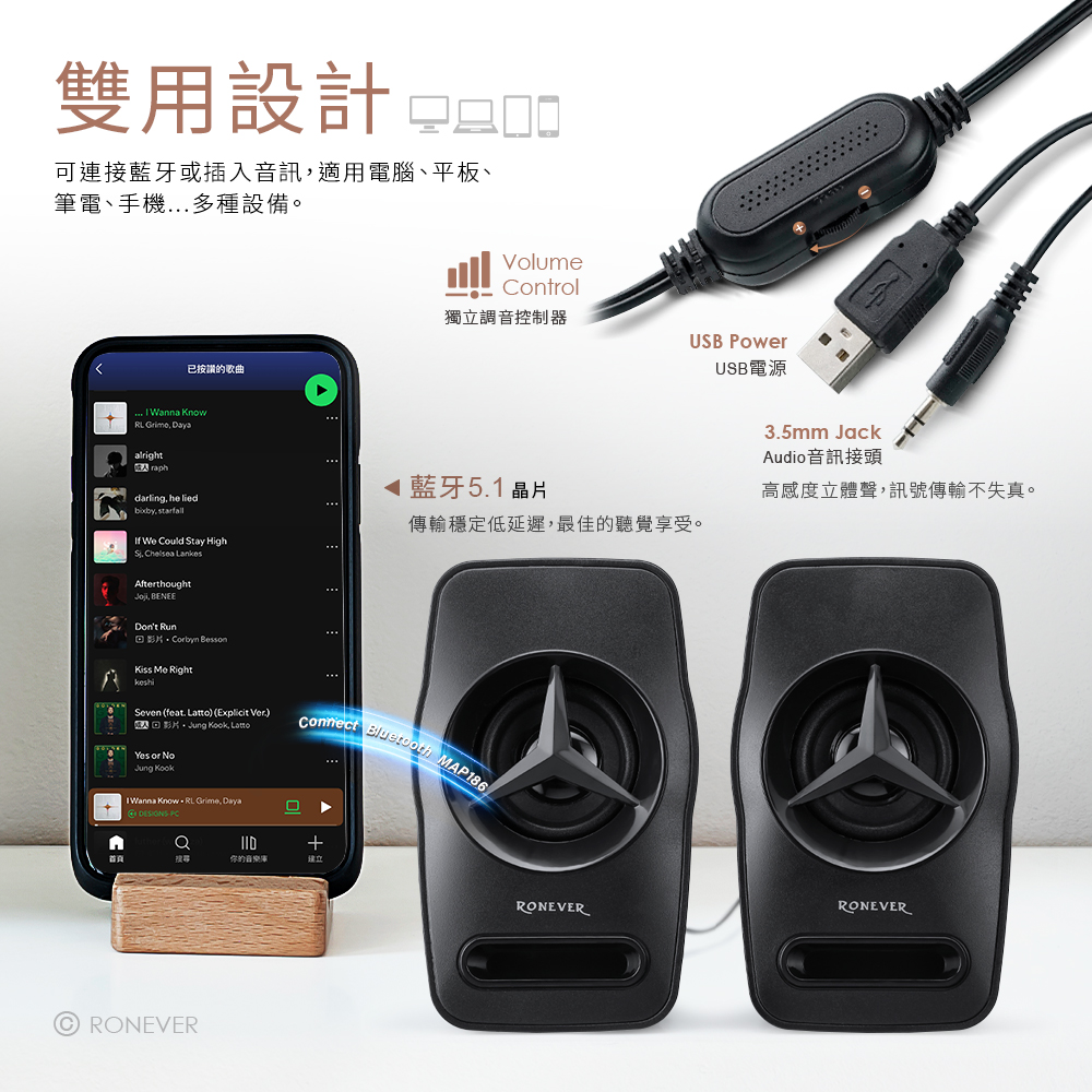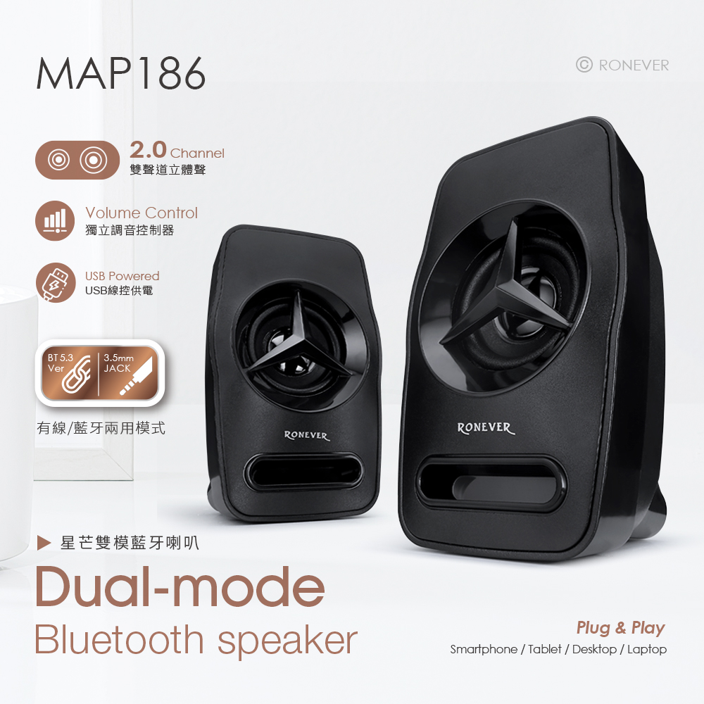 • 雙用設計,可連接藍牙或插入音訊,適用多種設備。• 藍牙5.1晶片,傳輸穩定低延遲,最佳的聽覺享受。• 高感度立體聲3.5mm迷你端子,訊號傳輸不失真。• 獨立無段音量調節控制器,直覺操作,即時便利。• 斜角外觀,星芒細緻造型設計,尺寸小巧、不佔空間。• 適用電腦、平板、筆電、手機...等設備。產品型號︰MAP186NCC檢驗型號︰SK2022-QB81藍牙技術︰Bluetooth Ver5.1額定電壓︰DC 5V/1A 輸出功率︰3Wx2揚 聲 器︰2吋x2信 噪 比︰≥80dB頻率響應︰60Hz-20KHz頻率接收範圍︰≧10M供電介面︰USB連接介面︰藍牙、AUX主機尺寸︰158x64x130 mm訊號輸入︰3.5mm音源輸入重 量︰約367g線 長︰約110cm材 質︰ABS塑膠、電子零件包裝內容︰藍牙喇叭x1、說明書x1
