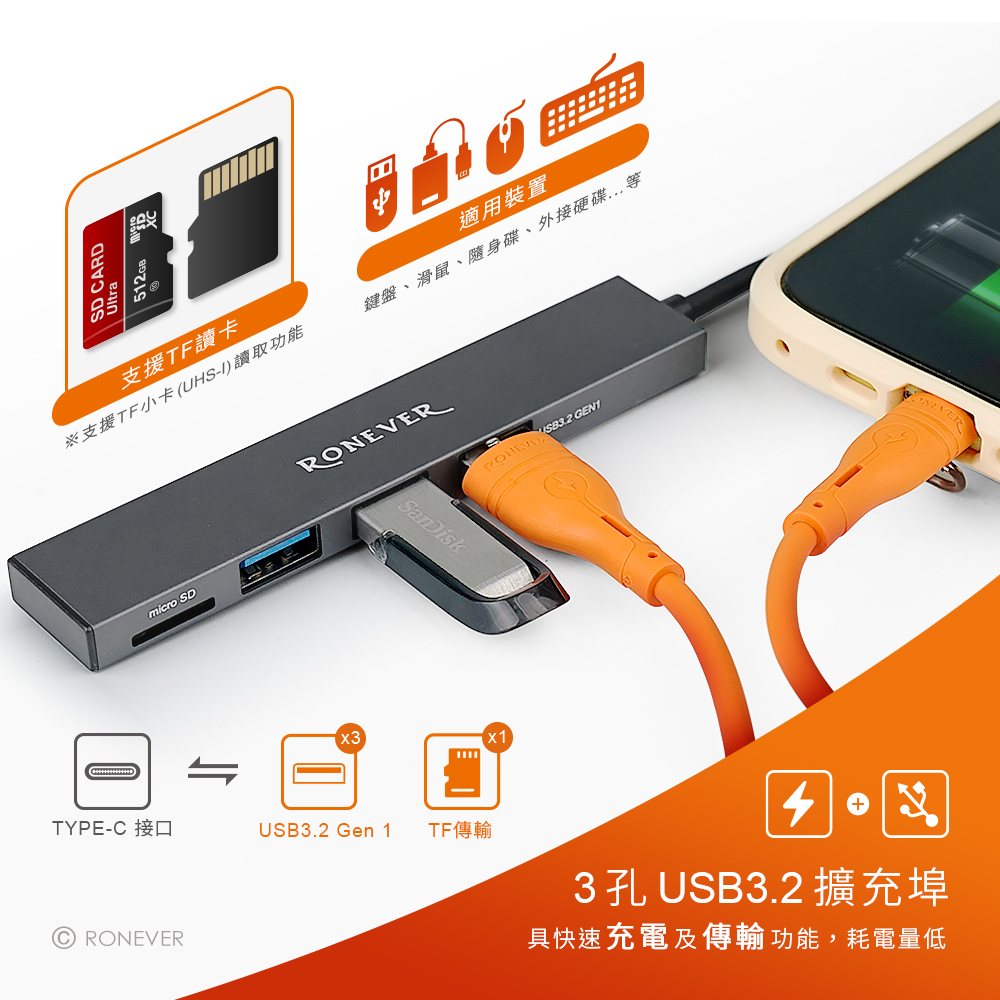 • 輕巧便攜免驅動,支援熱插拔,隨插即用。• 高質感鋁合金外殼,散熱快速,減少電磁波干擾。• 可應用於鍵盤、滑鼠、隨身碟、外接硬碟...等裝置。• 3孔USB3.2 Gen 1擴充埠,具充電及傳輸功能,耗電量低。• TYPE-C介面接口,支援TF讀卡機(小卡)+3個USB3.2孔,支援多種裝置。額定電壓:DC 5V工作電流:3A尺 寸:19x104x7mm線 長:約60mm擴充接口:USB3.2 Gen 1x3 / TF cardx1 (UHS-I)支援系統:MAC OS 10.10以上;Windows 7/8/10/11傳輸速度:USB 3.2 Gen 1支援最高5Gbps傳輸,向下相容 USB2.0重 量:22g材 質:鋁合金、ABS、電子零件轉接介面:Type-C內 容 物:HUBx1
