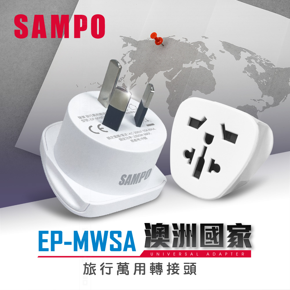 SAMPO EP-MWSA Travel Adapter (Three-Pronged) - Suitable for Australia, New Zealand, and China