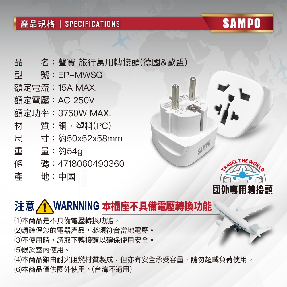 SAMPO 聲寶 EP-MWSG 旅行萬國轉接座