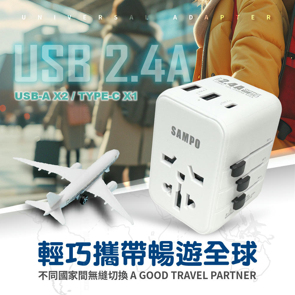 SAMPO EP-MWSW2A1C3 USB Travel Universal Adapter - Universal (Except Taiwan)
