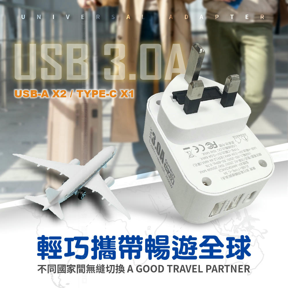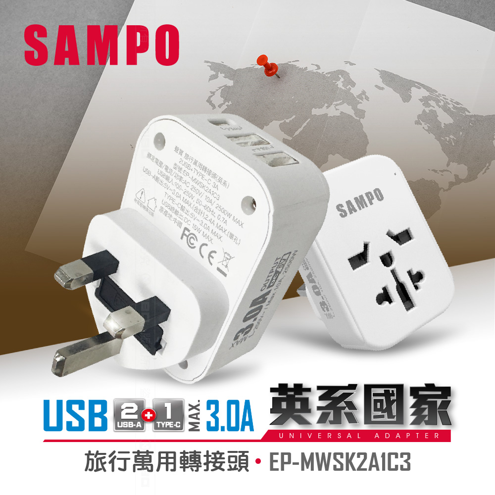 SAMPO EP-MWSK2A1C3 Travel Adapter, Flat Tripod, Suitable for the UK, Hong Kong, China, Macau, Singapore, and Malaysia.