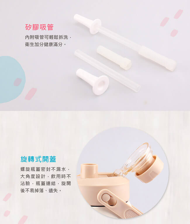 材 質:瓶身-內#304不銹鋼 / 上蓋-PP、PC、矽膠止漏圈 / 吸管-PP、矽膠