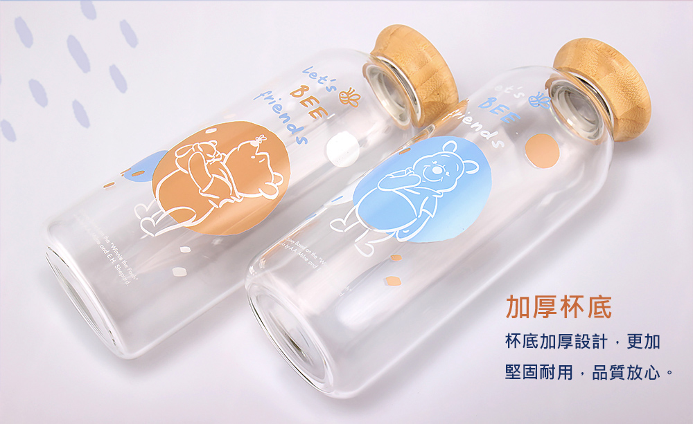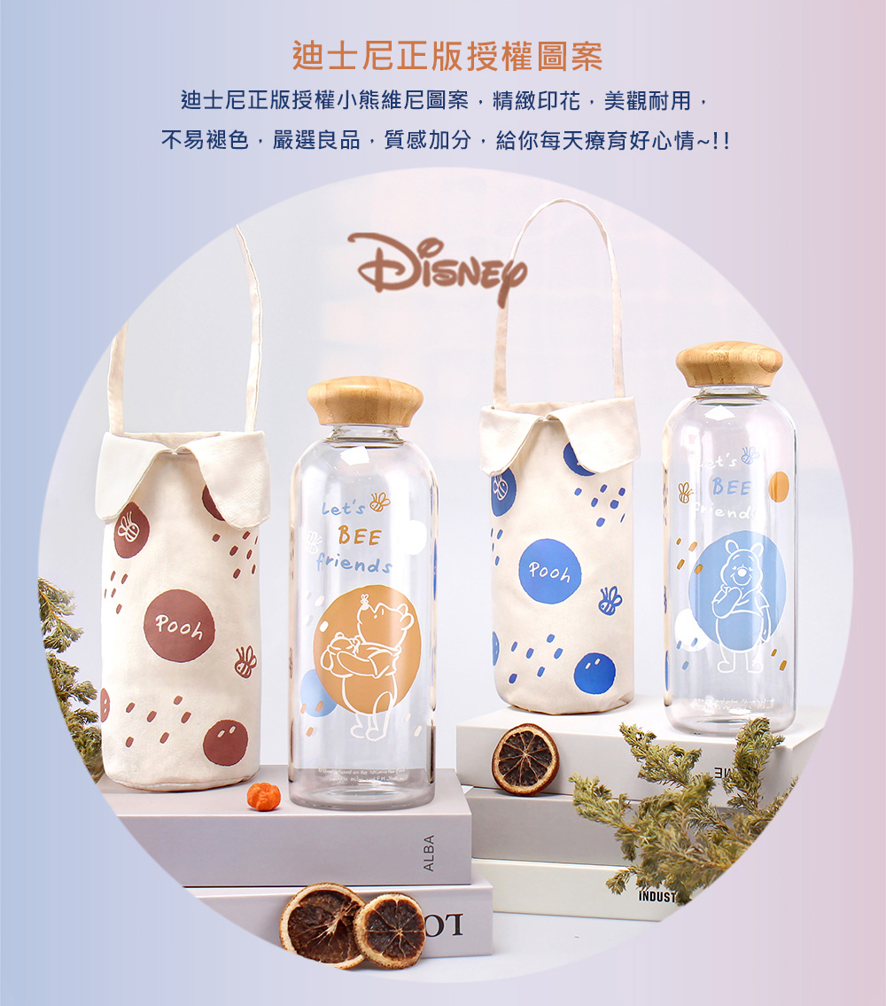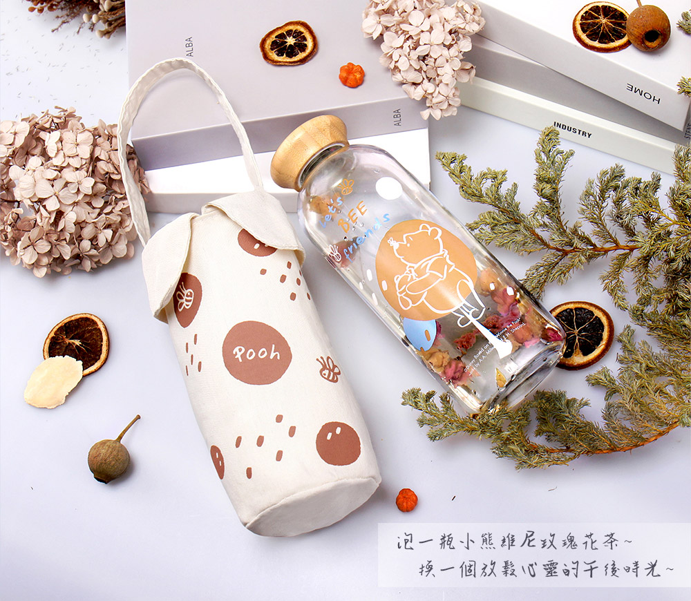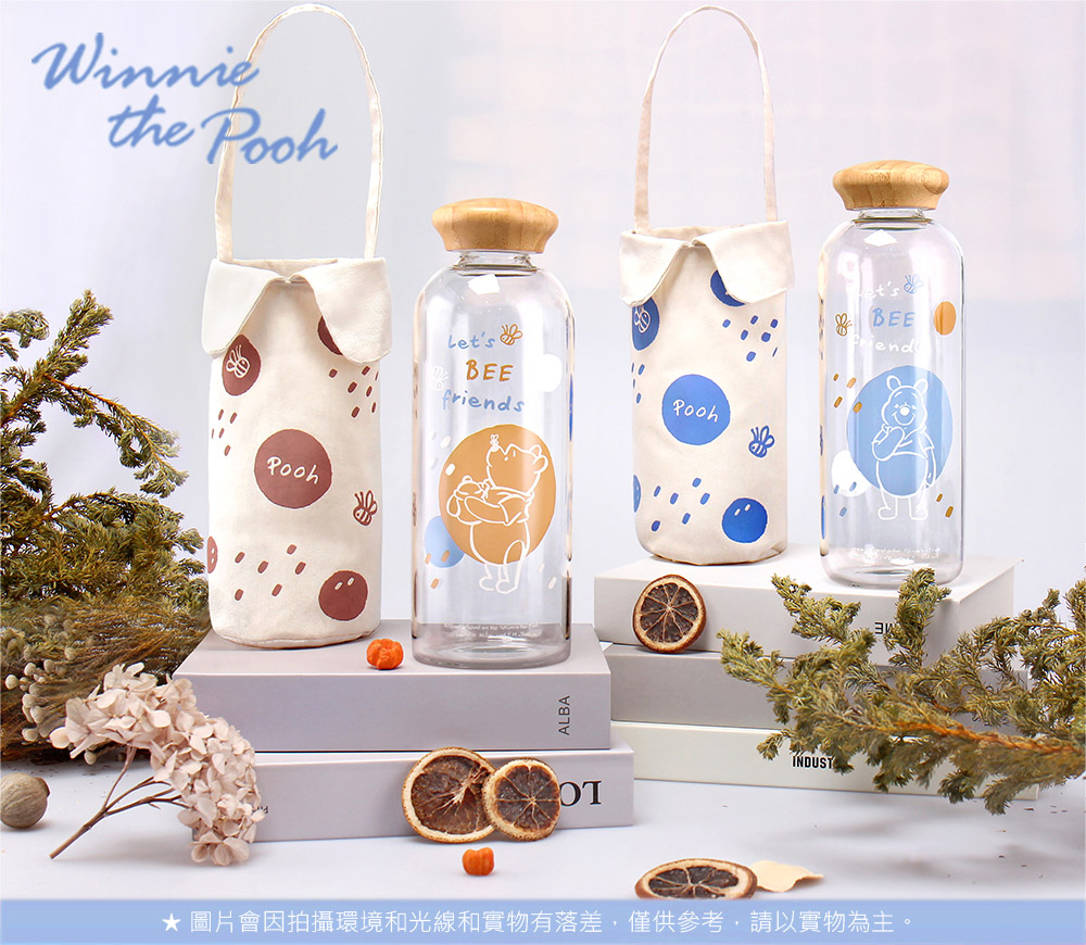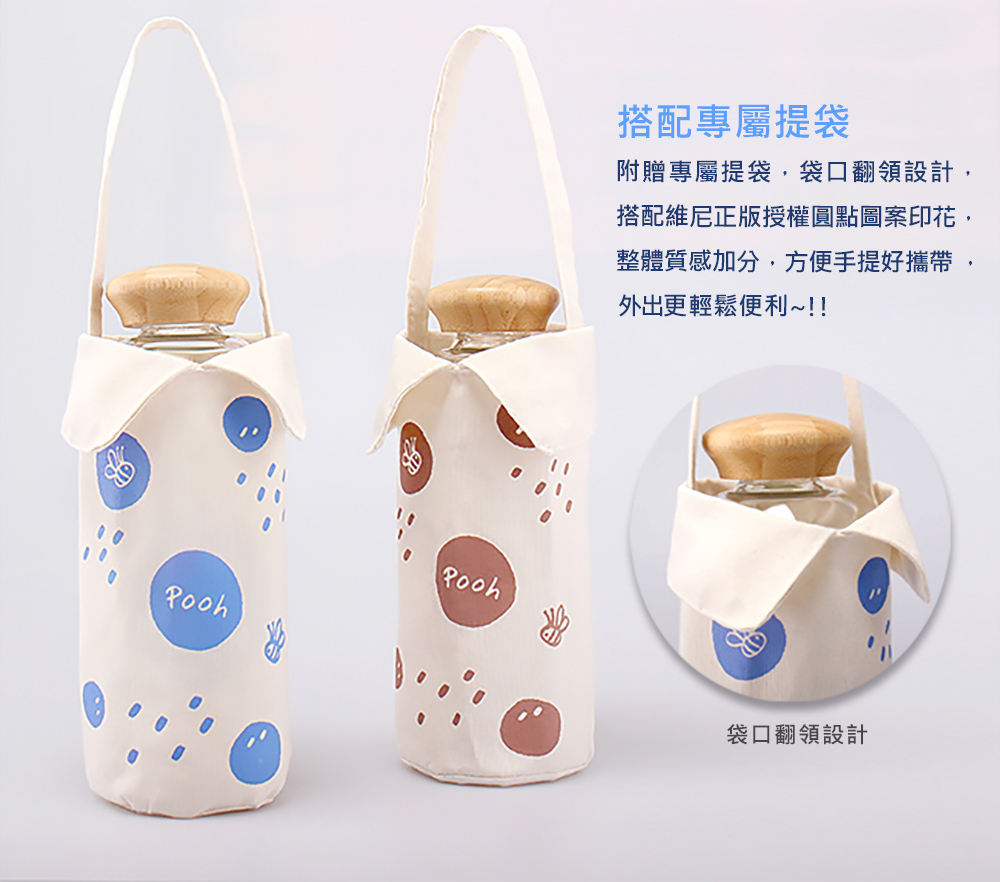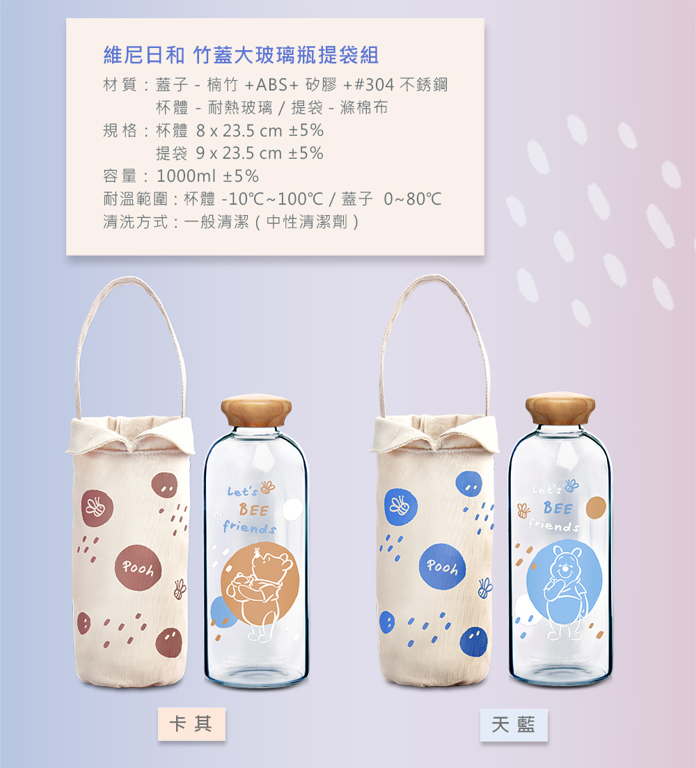 品名:迪士尼 維尼日禾竹蓋大玻璃瓶提袋組