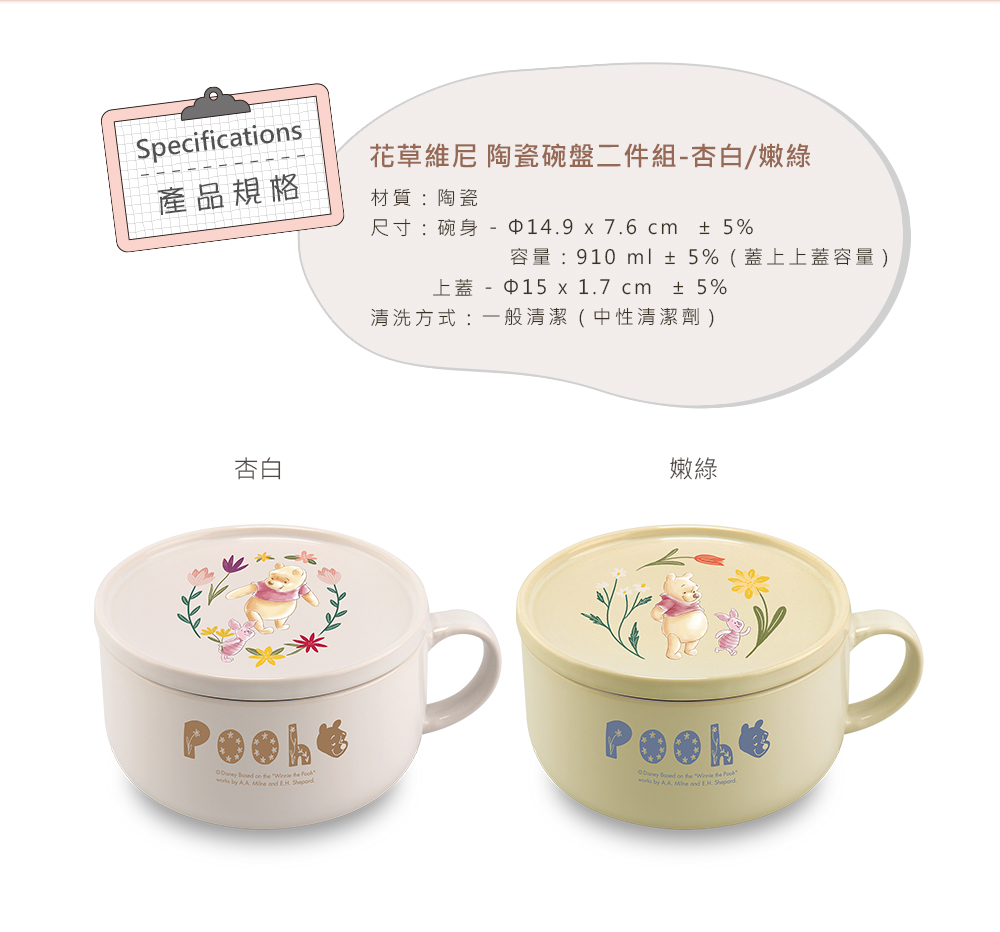 品名:迪士尼花草維尼 陶瓷碗盤二件組