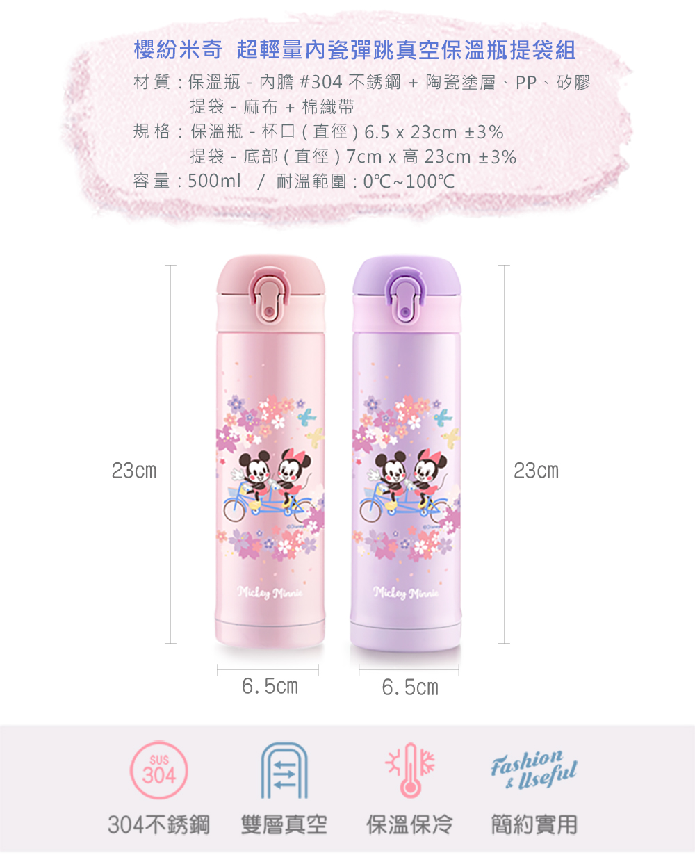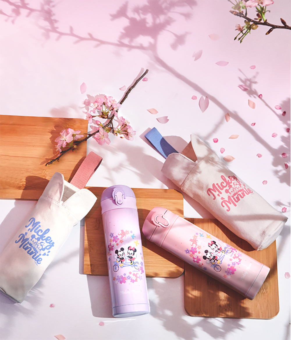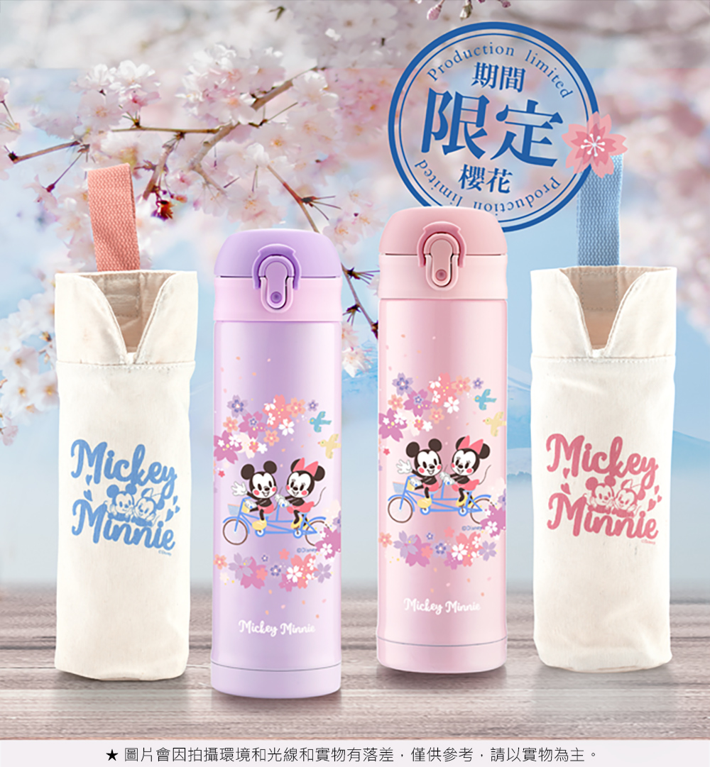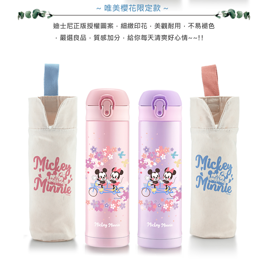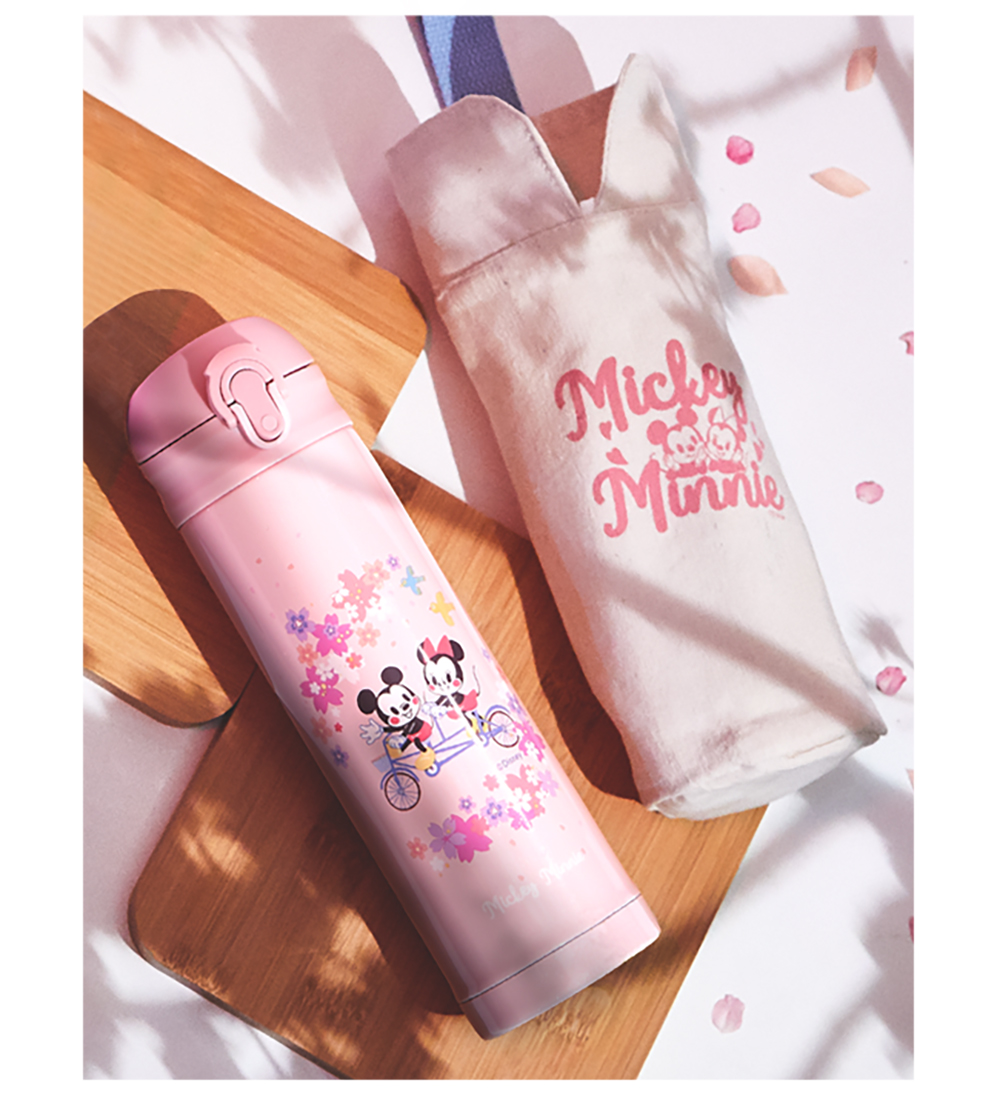 Disney Sakura Mickey Mouse 304 Stainless Steel Vacuum Bounce Insulated Bottle and Bag Set - Pink
