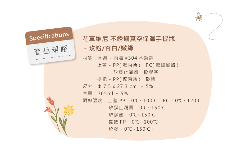 品名:花草維尼 不銹鋼真空保溫手提瓶