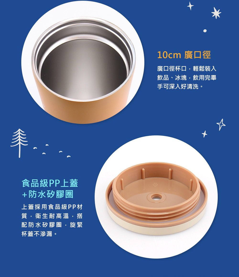 2. 在生產製程中,因工藝需要及製程限制:上蓋塑膠材質會有些微劃痕、毛邊,保溫/冰效能會因盛裝的溫度與氣溫變化而有所差異;杯身(口)處會有些微著色不均;每位使用者的力道不同,在旋緊上蓋後,圖案目測上都有可能會有偏移視覺效果,皆屬正常現象,不影響產品功能使用。