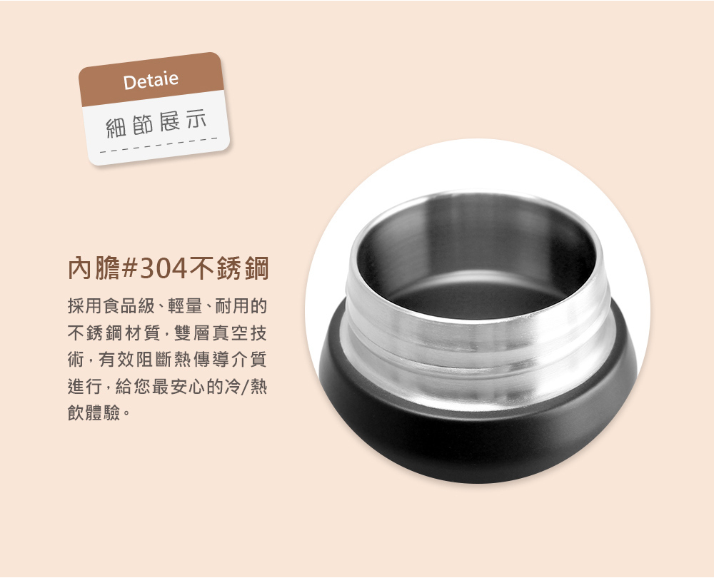2. 在生產製程中,因工藝需要及製程限制:上蓋塑膠材質會有些微劃痕、毛邊,保溫/冰效能會因盛裝的溫度與氣溫變化而有所差異;杯身(口)處會有些微著色不均;每位使用者的力道不同,在旋緊上蓋後,圖案目測上都有可能會有偏移視覺效果,皆屬正常現象,不影響產品功能使用。