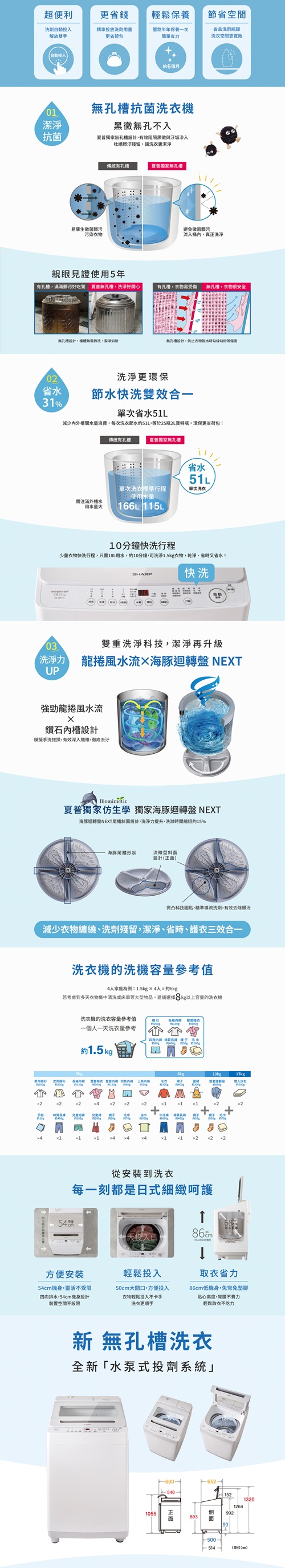 SHARP 夏普 13KG ES-ASW13T無孔槽抗菌洗衣機-新增自動投劑