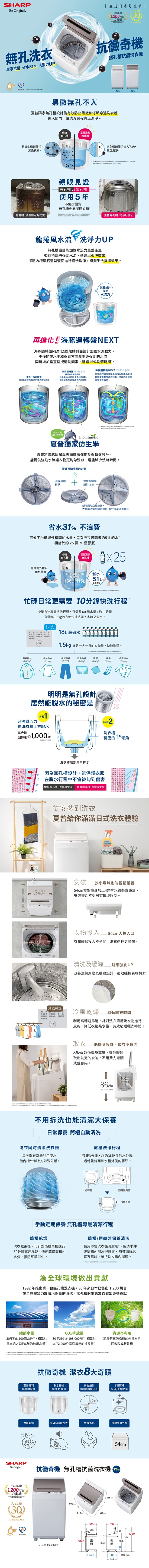 SHARP 夏普 13KG ES-ASW13T無孔槽抗菌洗衣機-新增自動投劑