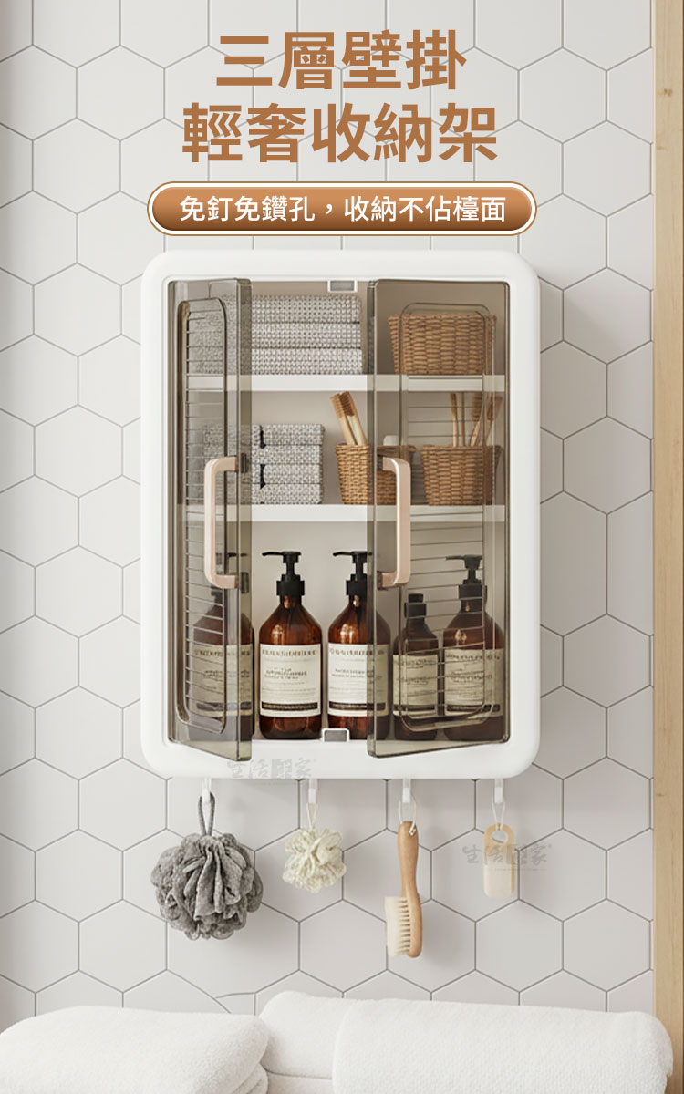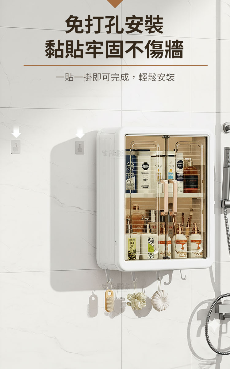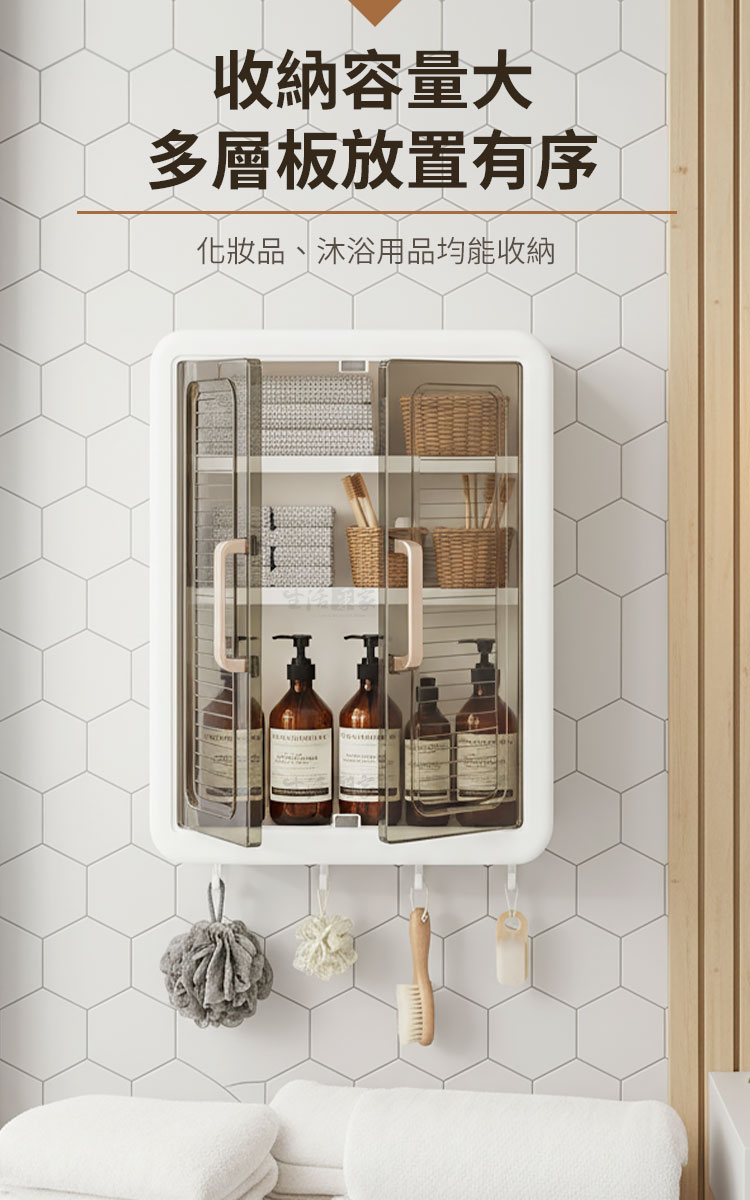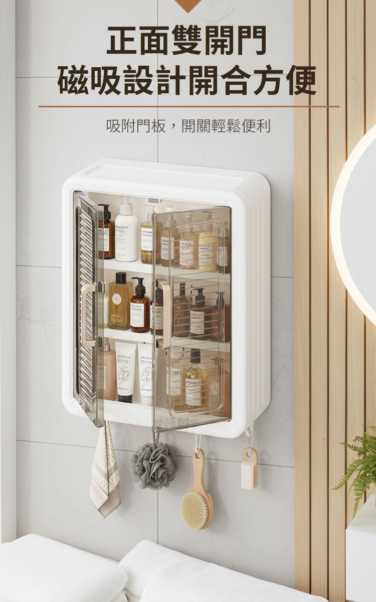 「生活中不缺美好,缺的是像這樣的收納好幫手。」🔒🌸每寸空間都被細心呵護。輕奢美學與高實用性完美融合,從繁亂中解放,讓收納變成輕鬆的享受。磁吸雙開門防塵防潮,不需打孔安裝,無論是小空間還是大空間,都能瞬間提升整潔感。👉免打孔無損牆面:無痛貼上貼片,從容掛上,無需工具,不傷牆面,時尚便捷。👉折疊設計,好拆好裝:折疊功能讓安裝更靈活,搬家移動時輕鬆拆卸、攜帶。👉多層收納:結構合理分層分區,小物品分類放置,隨拿隨取,讓空間更高效。👉磁吸雙開門:磁吸門扉設計,防塵且防潮,輕拉即開,輕推即關,簡單便利。👉承重耐壓:無懼多物,層層荷重,承重力強,即便是多層放置也穩固如初。👉隨處可用:耐潮性設計,適合廚房、浴室等多處空間,從此讓收納更為靈活。👉頂部置物、底部掛鉤:頂部放置常用瓶罐,底部貼心掛鉤,毛巾、抹布輕鬆收納。👉顏值與實力並存:高顏值設計,與各種家居風格輕鬆搭配,點亮空間美感。打開這雙門,收納的是家的整潔與心的安穩,生活不僅是收納,更能打造高質感的家居生活!