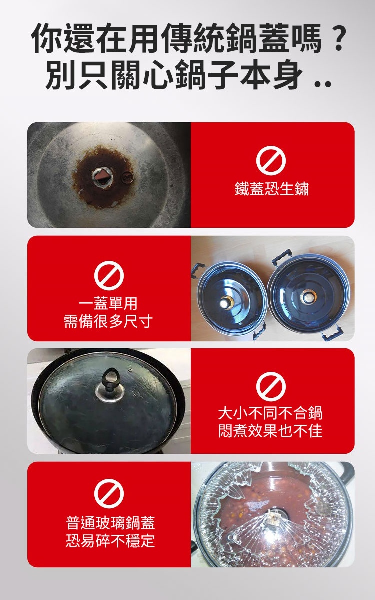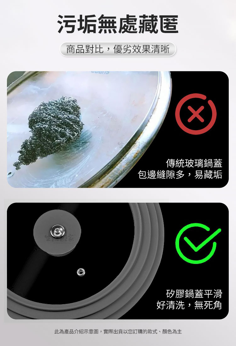 一個鍋蓋,搞定所有鍋具!🍳💡以前煮飯最麻煩的就是找鍋蓋,每個鍋子尺寸不同,鍋蓋一堆又佔空間,還常常找不到對應的那個!😩 但自從用了這款三尺寸通用矽膠圈玻璃鍋蓋,真的覺得廚房整潔度提升了好多,煮飯也更順手了!💖🔹 一蓋通用,終於不用再翻鍋蓋了!這個鍋蓋可以適用三種尺寸的鍋子,不管是湯鍋、炒鍋還是平底鍋,直接蓋上就能用,超級方便!以前的那些雜亂鍋蓋,現在可以全部收起來,廚房整齊度+100!✨🔹 強化玻璃透明設計,隨時掌控烹調狀況燉湯的時候,不用一直掀開來看熟了沒,透明玻璃設計讓我一眼就能看到裡面的變化,省時又省力,還能減少熱氣流失!🔹 矽膠包邊柔軟貼合,密封又靜音這點真的很讚!矽膠邊緣超服貼,不僅能緊密蓋住鍋子,防止湯汁外溢,而且放下時完全沒有那種鍋蓋敲鍋的刺耳聲音,安靜又不傷鍋!👏🔹 通過美國FDA檢驗(報告號碼:CANEC24018142713)CHINA經SGS檢驗機構依據美國塑膠食品容器安全測試標準-US FDA 21 CFR part 177.2600 (溶出物)、 US FDA CPG Sec 545.400 及 CPG Sec 545.450 (鉛、鎘重金屬),進行測試,其檢驗結果均為通過,使用安全無虞。🔹 好清潔,不藏污納垢以前的鍋蓋縫隙總是容易卡髒東西,這款鍋蓋的一體成型矽膠圈完全沒有這個困擾!油汙沖一下就乾淨,真的超省事!現在我只用這一個鍋蓋,廚房不再雜亂,煮飯時不用再苦惱鍋蓋對不對得上,輕鬆又方便!如果你跟我一樣喜歡簡單、高效的料理方式,這款鍋蓋真的必需入手!💖 讓煮飯變輕鬆,趕快試試吧! 🎉注意事項:1.請勿重摔或高處掉落,以免商品受損。2.請勿接近高溫或勿近火源處,以免商品受損。3.商品情境圖片僅供參考,實際出貨不含週邊道具及配件。4.購買前請先量測使用區域尺寸,確定無誤再購買以免尺寸不合,敬請謹慎選購。商品規格:1.尺寸:約直徑21*高5cm2.材質:矽膠、強化玻璃3.重量:約326g/組4.產地:中國5.適用:16cm/18cm/20cm鍋具6.檢驗:美國FDA檢測合格(報告號碼:CANEC24018142713) CHINA※商品為人工丈量略有誤差,請以實品為準。※網頁圖片因拍攝關係或螢幕設定不同而會與實際商品略有色差,請以實際收到商品為準。