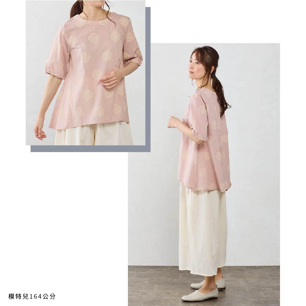 日本【SHONAGON】印度棉印花寬鬆上衣涼やかで優しい風合い。オリジナル・刺繍チュニック後ろゴムで楽々着脱インドのさらっと快適な綿麻素材を使用したオリジナル柄の刺繍チュニック。目を惹く刺繍でシンプルになりがちな春夏のコーデに華やぎをプラスして カジュアルにも上品スタイルにもこなせ、 ゆったりシルエットと5分袖で体型カバーにも使えるアイテムです。清涼柔和的質感。原創印花長版上衣,彈性後背,穿脫方便採用順滑舒適的印度棉質布料,印有原廠SPAN印花。為偏向簡約的春夏裝束增添一抹魅力,無論休閒或優雅,都能輕鬆駕馭。寬鬆的輪廓和5/8袖的設計也有助於修飾身材。【材質】100%純棉【LL】衣長68CM / 肩寬41CM / 胸圍110CM / 袖長29CM / 袖口30CM / 下擺圍158CM【產地】印度SNG-13470438PLL 粉 LL