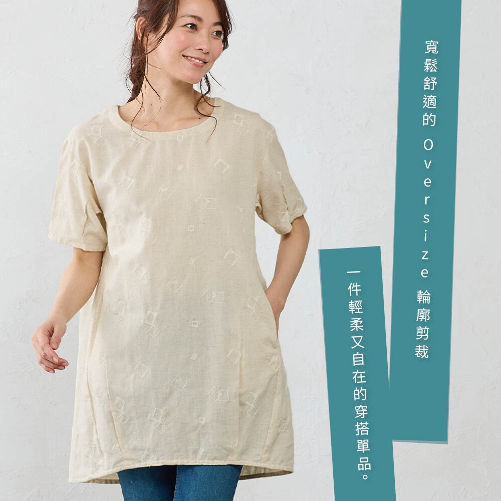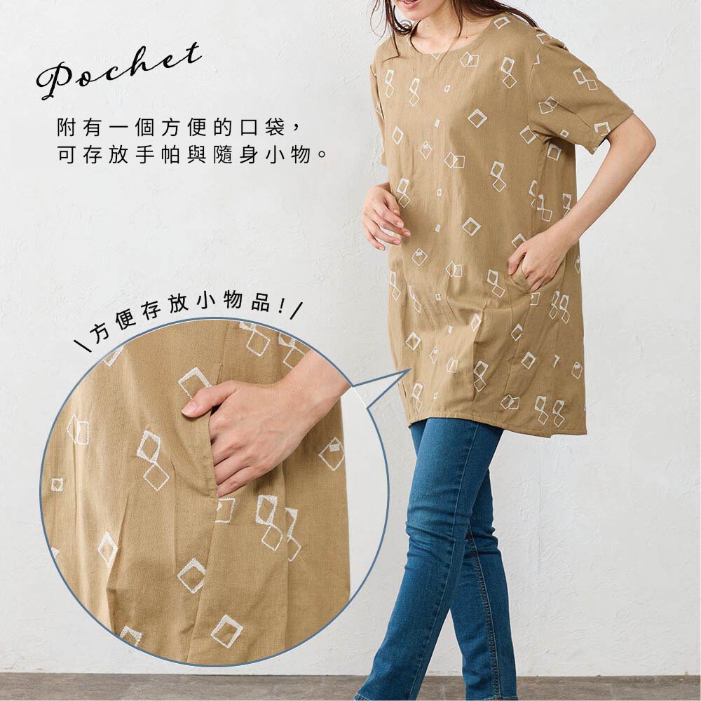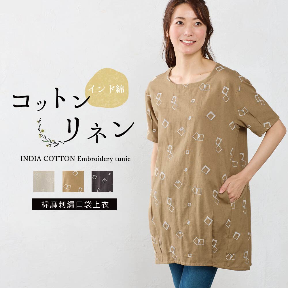 日本【SHONAGON】棉麻刺繡口袋上衣涼やかで優しい風合い。オリジナル・刺繍チュニック後ろゴムで楽々着脱インドのさらっと快適な綿麻素材を使用したオリジナル柄の刺繍チュニック。目を惹く刺繍でシンプルになりがちな春夏のコーデに華やぎをプラスして カジュアルにも上品スタイルにもこなせ、 ゆったりシルエットと5分袖で体型カバーにも使えるアイテムです。清涼柔和的質感。原創刺繡長版上衣,彈性後背,穿脫方便這款原創刺繡長版上衣採用光滑舒適的印度棉麻布料製成,圖案別緻。搶目的刺繡圖案為春夏簡約風服裝增添一抹魅力,可搭配休閒或優雅風格。寬鬆輪廓和5/8袖設計,有效遮蓋身材。【材質】85%純棉,15%麻【M-L】衣長82CM / 胸圍106CM / 肩寬50.5CM / 袖長20CM / 袖口28CM / 下擺圍114CM【產地】印度SNG-13409450IM 象牙白M~LSNG-13409450RM 焦糖 M~LSNG-13409450BM 黑M~L