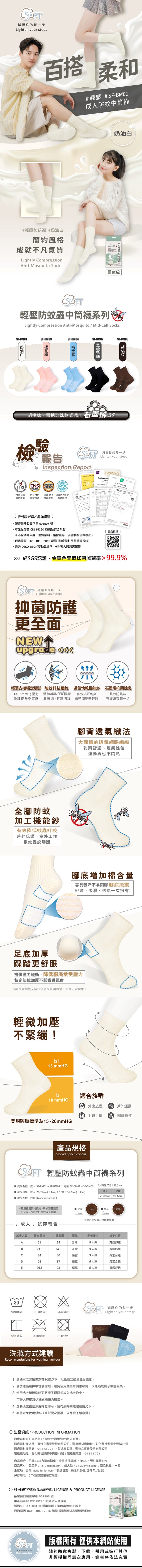 商品名稱:SOFT輕壓防蚊蟲中筒襪 醫療級
