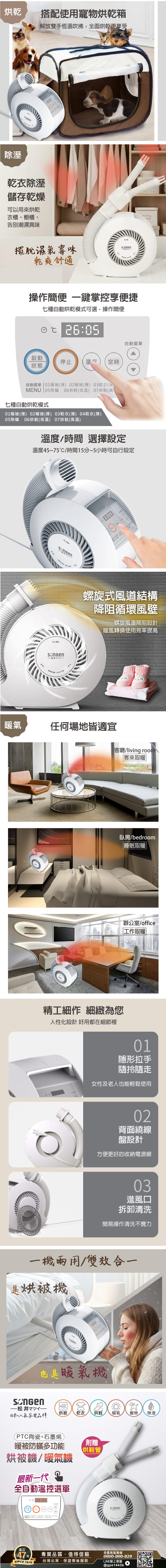 採用石墨烯+PTC陶瓷雙超導體烘被/暖氣/烘鞋/乾衣 多功能全自動溫控選單,一鍵暖被乾衣650mm伸縮軟管深入被套除溼附贈烘鞋管,高筒靴也能輕鬆烘乾寵物毛小孩,吹乾毛髮,烘乾取暖