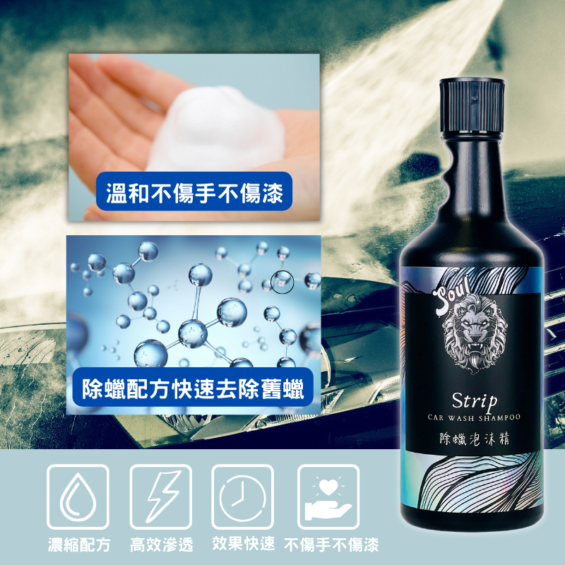 溫和水性配方:台灣研發製造,雖去污力強但配方溫和,正確比例使用下不傷金油層與車漆。