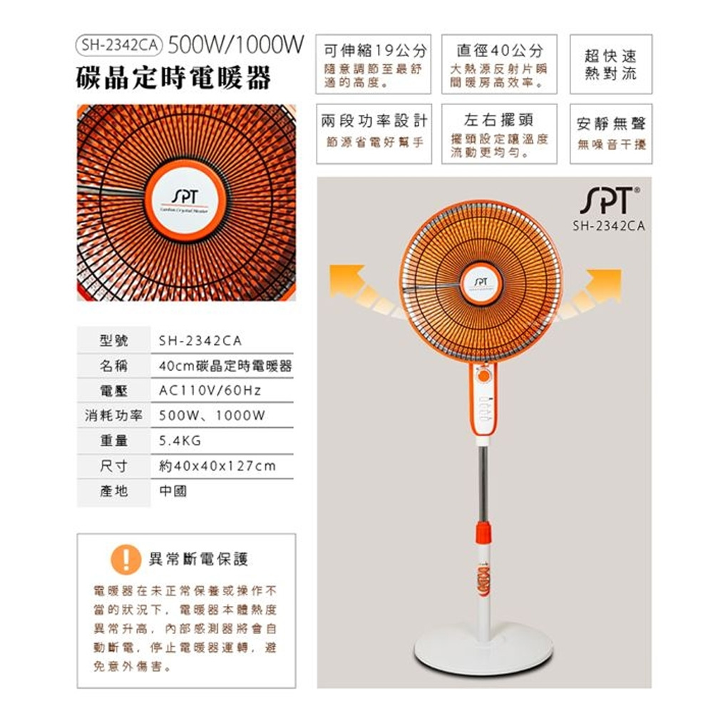 SPT Sunpentown 40cm Carbon Crystal Oscillating Timer Electric Heater SH-2342CA