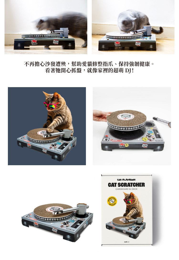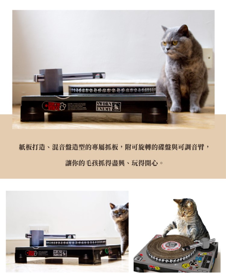 🐾 DJ 貓抓碟盤玩具紙板打造、混音盤造型的專屬抓板,附可旋轉的碟盤與可調音臂,讓你的毛孩抓得盡興、玩得開心。