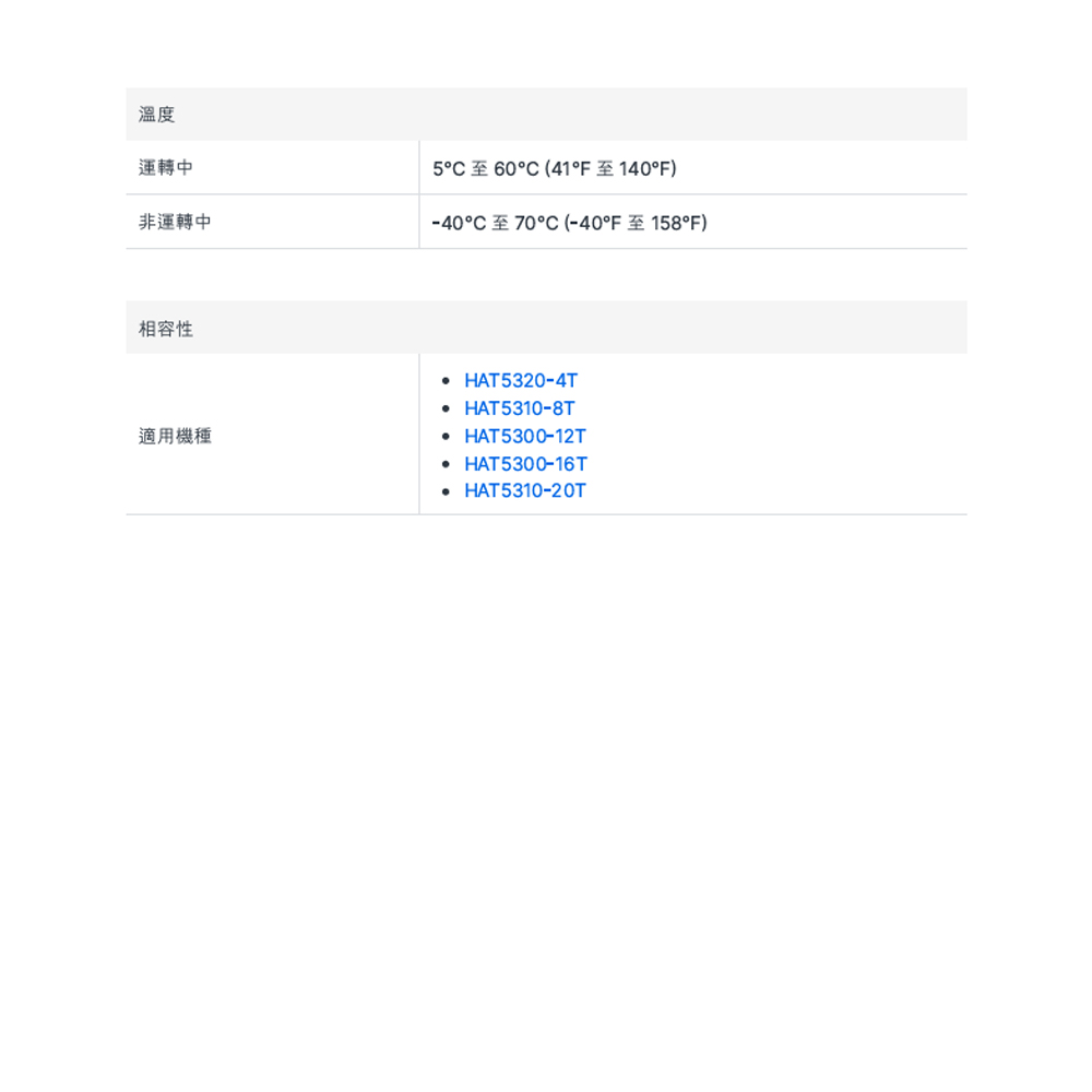 非運轉中 -40°C 至 70°C (-40°F 至 158°F) (無冷凝)