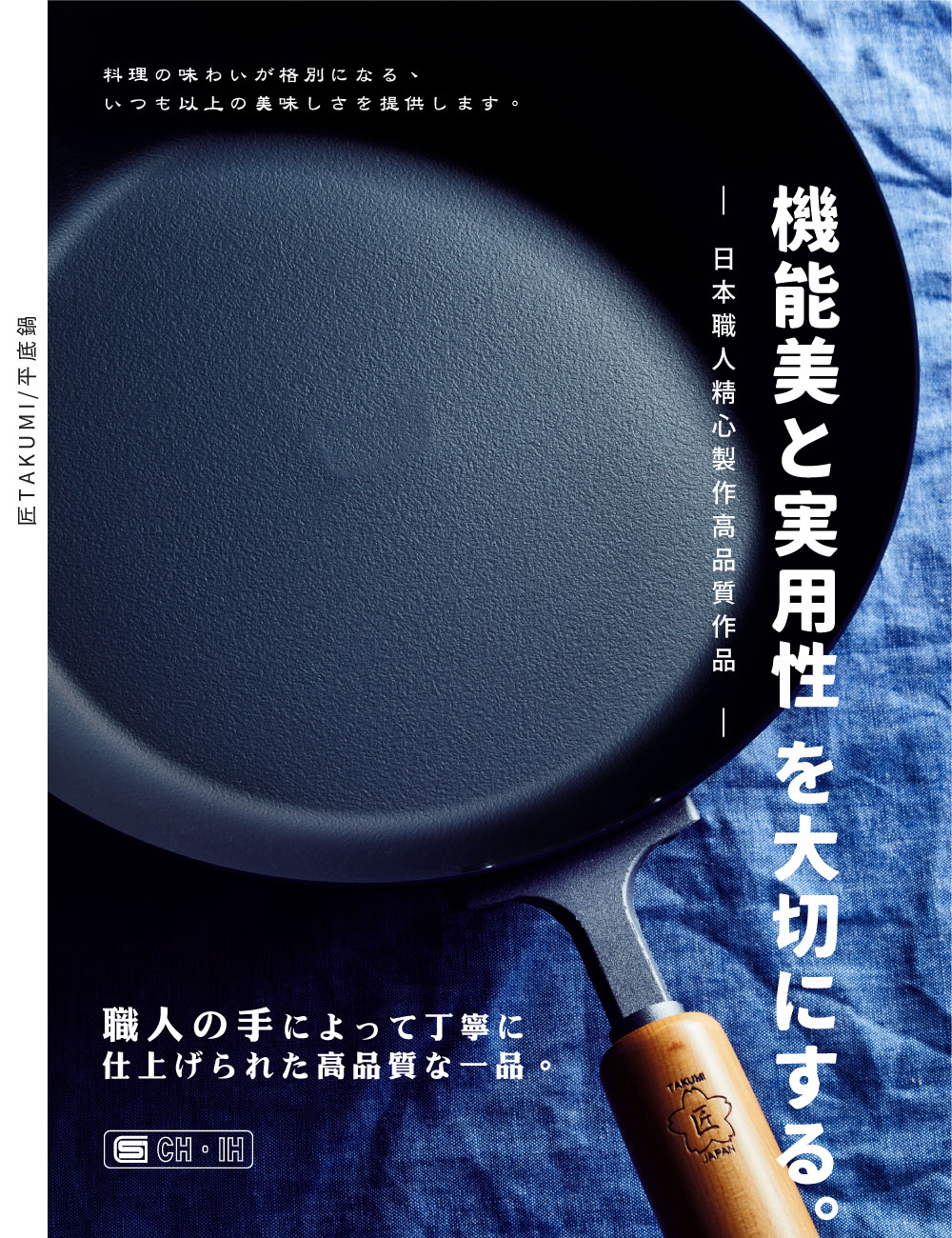 【Japan TAKUMI】Takumi Rock-Pattern Iron Frying Pan 26cm (Made in Japan)