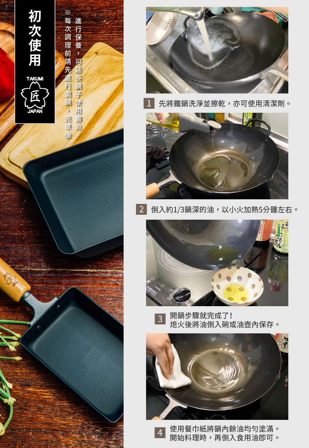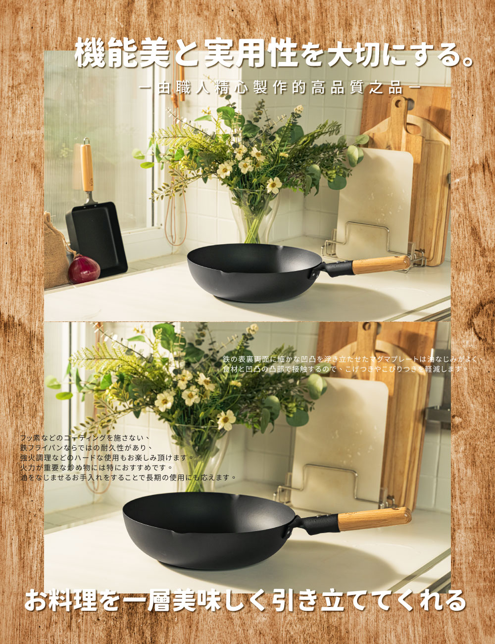 【Japan TAKUMI】Takumi Rock-Pattern Iron Wok / Iron Frying Pan 28cm (Made in Japan)